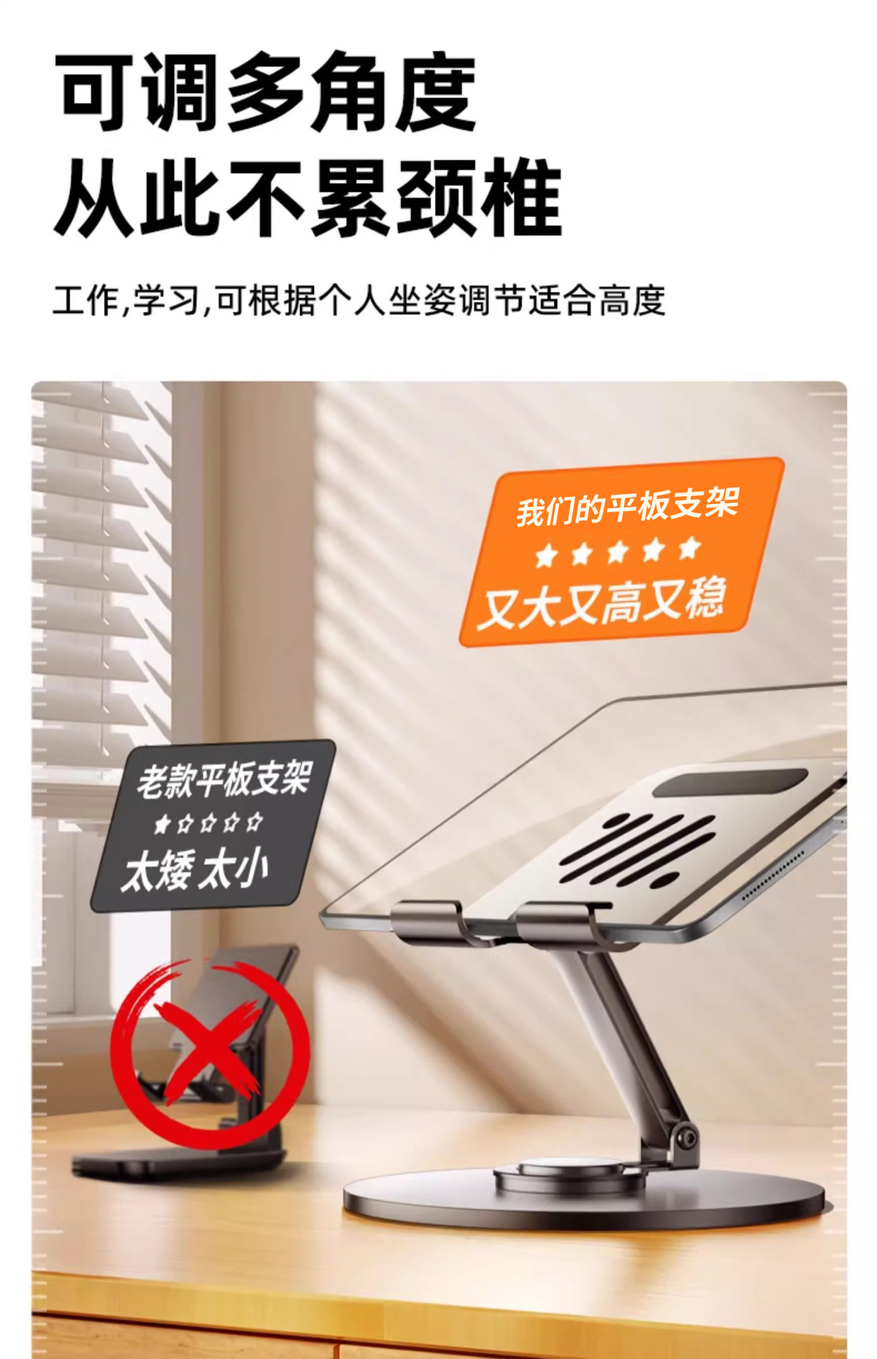 휴대 전화 홀더 탄소 강철 평면 범용 상승 랙 360 도 회전 접이식 리프팅 데스크탑 선반스토어 가기