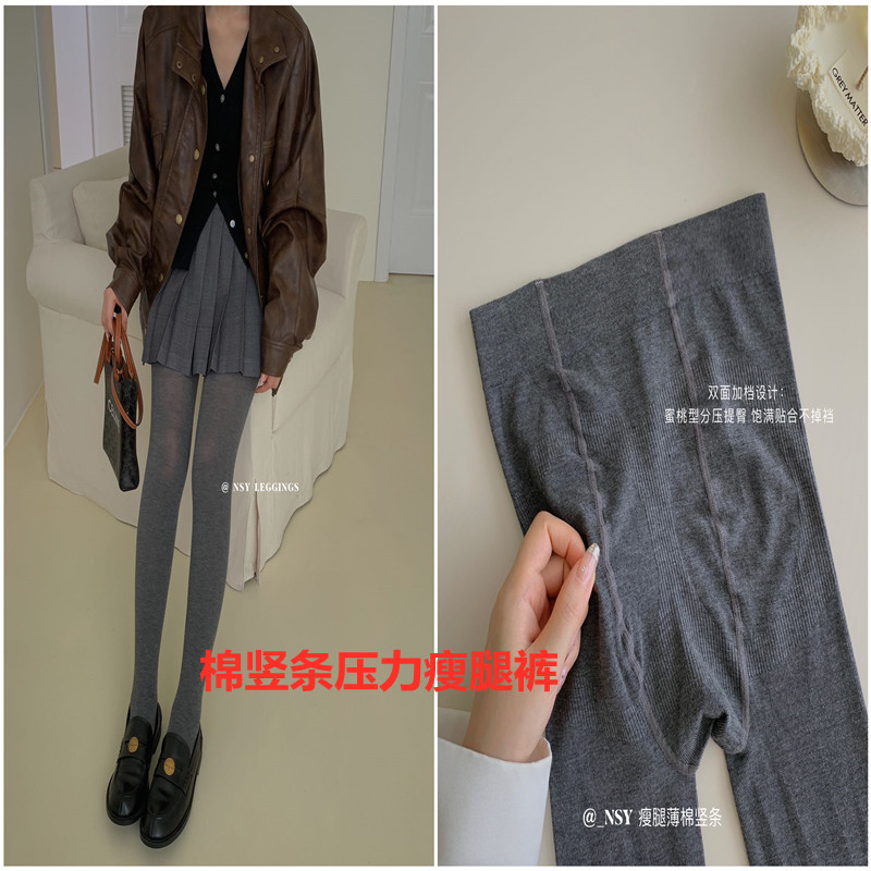 NSY303 면 세로 줄무늬 슬림 레깅스 여성용 약 압박 팬티스타킹 다용도 슬림 레깅스 힙업 양말 겨울용