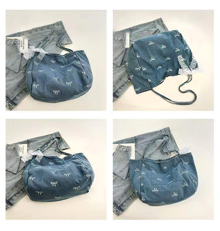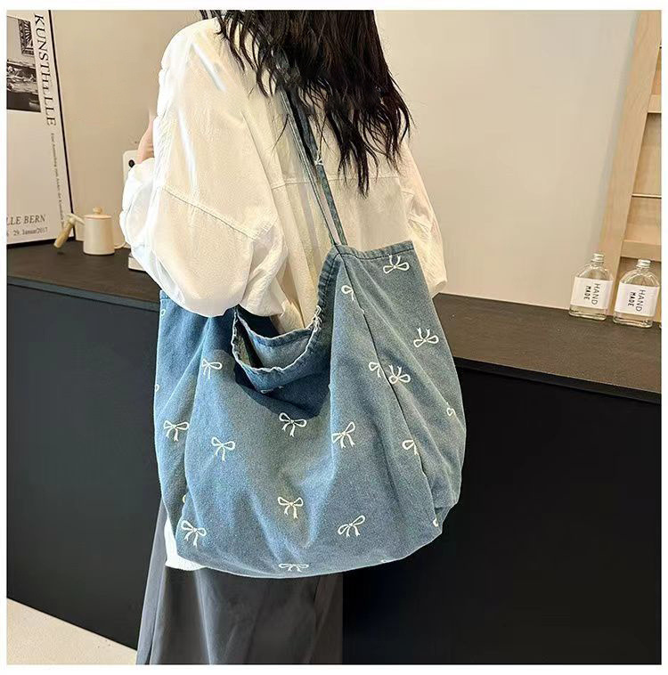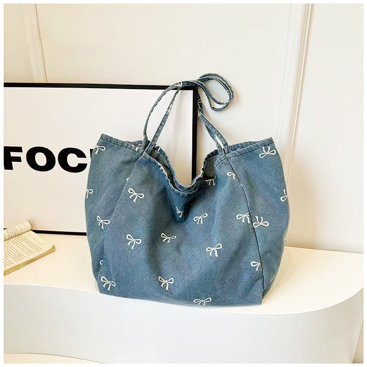 새로운 고가의 데님 캔버스 가방 여성용 활 달콤한 올 매치 토트 백 대용량 캐주얼 숄더 백스토어 가기