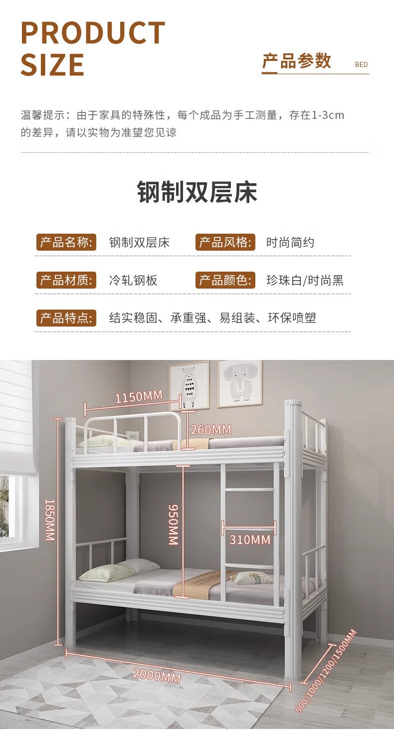 더블 레이어 프로필 침대 학생 기숙사 침대 사이트 높고 낮은 침대 직원 침대 철제 침대 프레임 침대스토어 가기