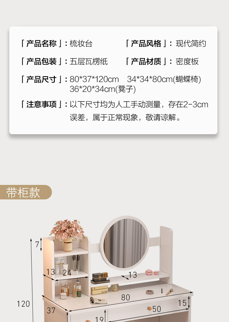 화장대 침실 심플 모던 책상 화장대 일체형 화장대 수납장 다기능