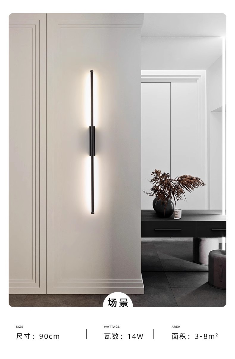 미니멀리스트 현대 빛 럭셔리 롱 바 빛 황금 벽 램프 침실 침실 연구 창조적 인 2023 한 단어 거실