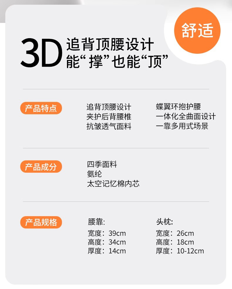 • 편안한 머리 받침 및 요추 지지대 세트