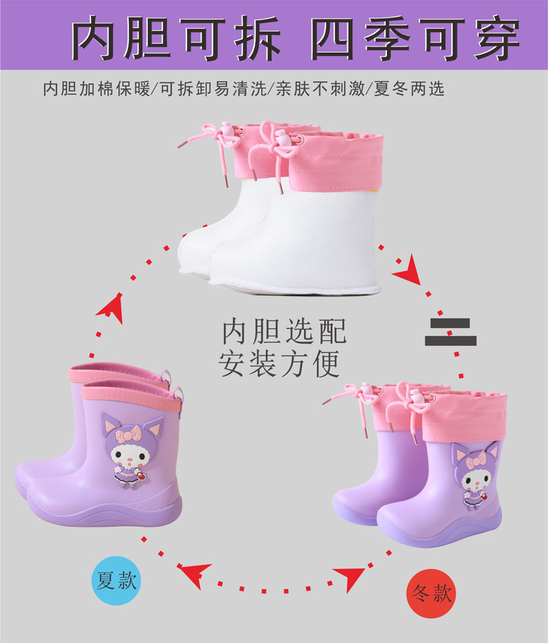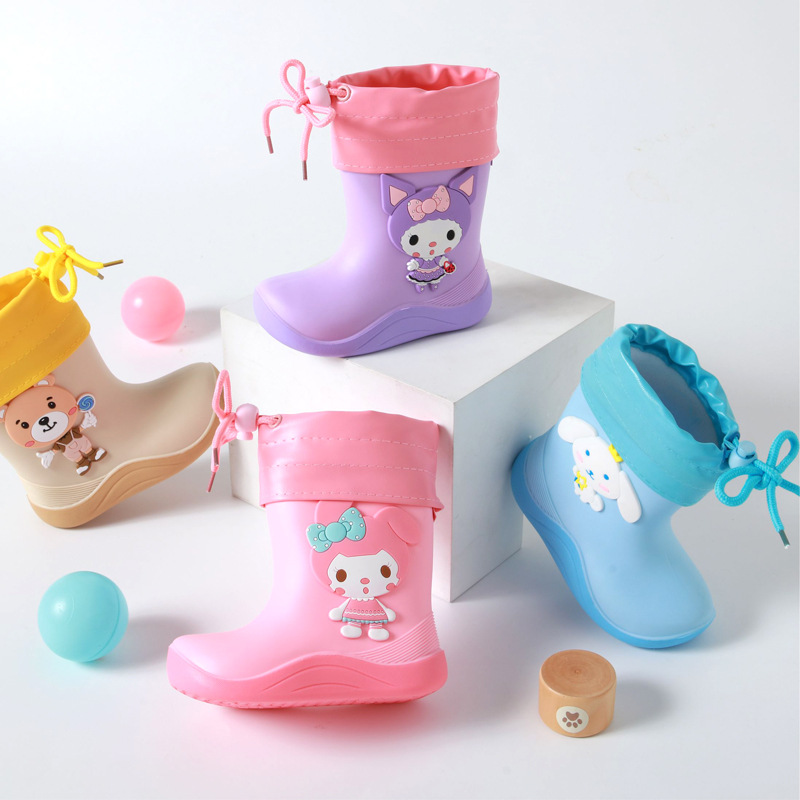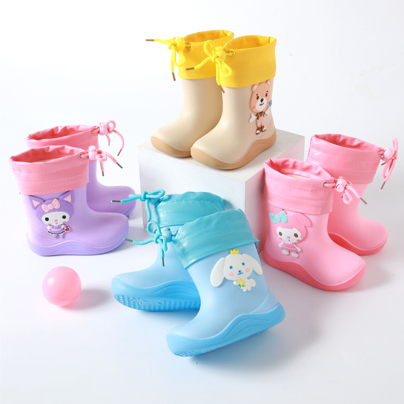 어린이 비 부츠 아기 장화 기모 귀여운 만화 방수 미끄럼 방지 고무 신발 소년 소녀 사계절 어린이 물 신발