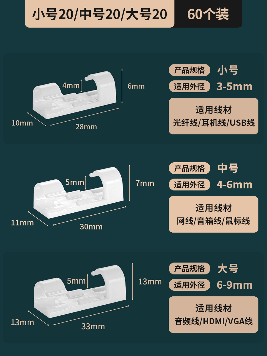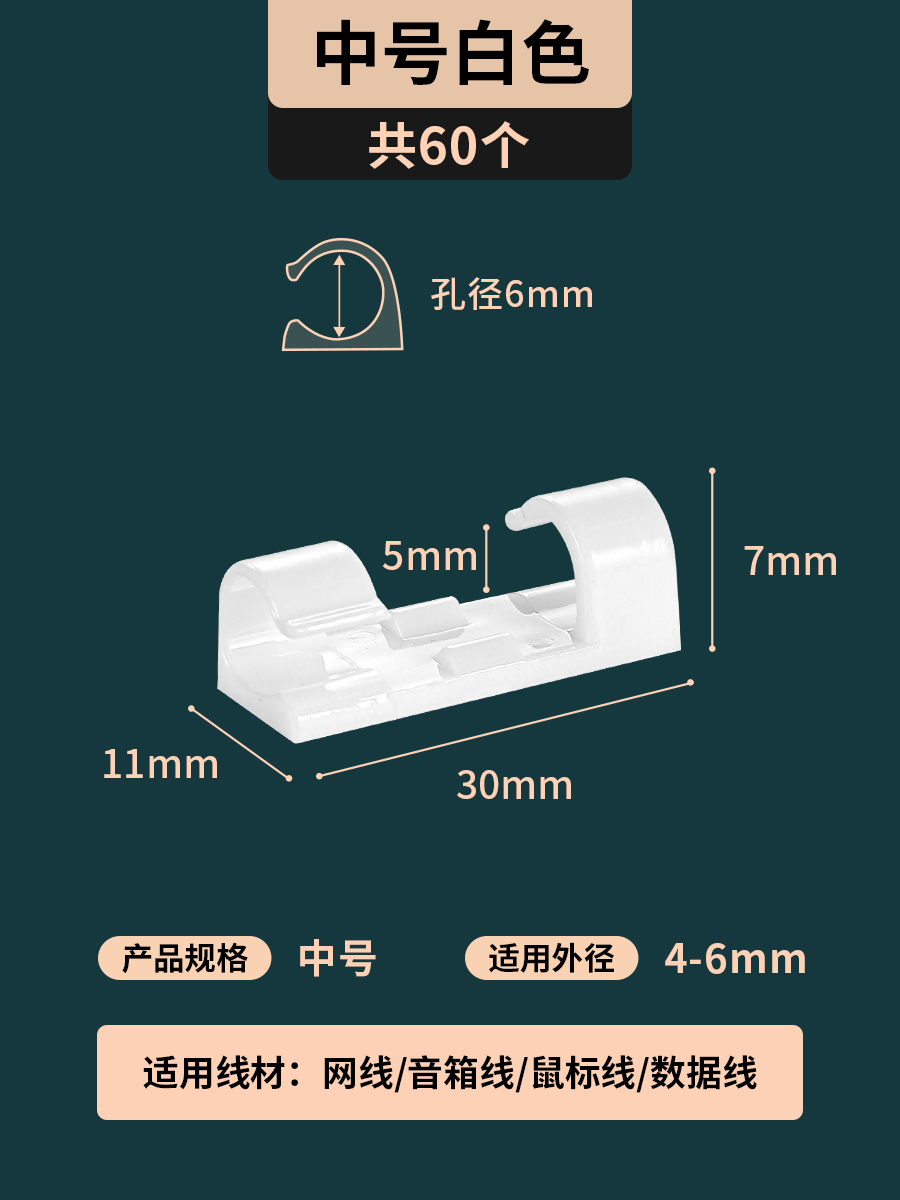 • ☌⍤⍤☌【중형】흰색 60개(네트워크 케이블/마우스 케이블/스피커 케이블/시스 케이블) ☎⍤⍤☌