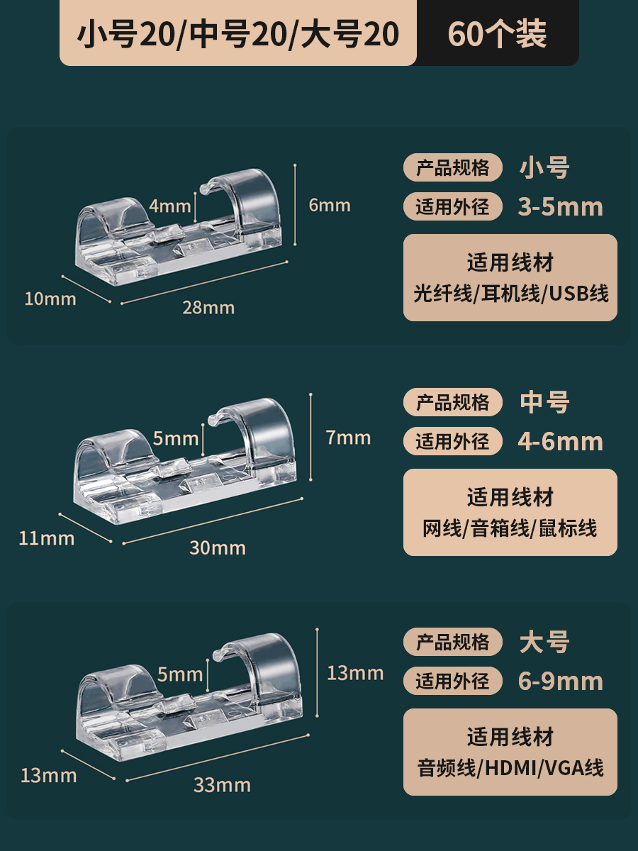 • ☌⍤⍤☌【소형】투명모델 60개(이어폰케이블/USB케이블/전화선/광케이블) ☌⍤⍤☌