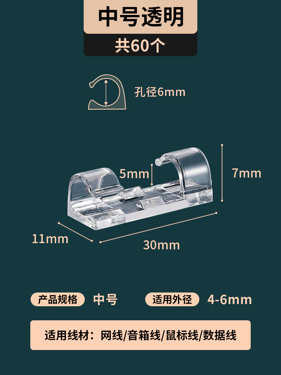 • ☌⍤⍤☌【중형】투명모델 60개(네트워크케이블/마우스케이블/스피커케이블/시스케이블) ☎⍤⍤☌