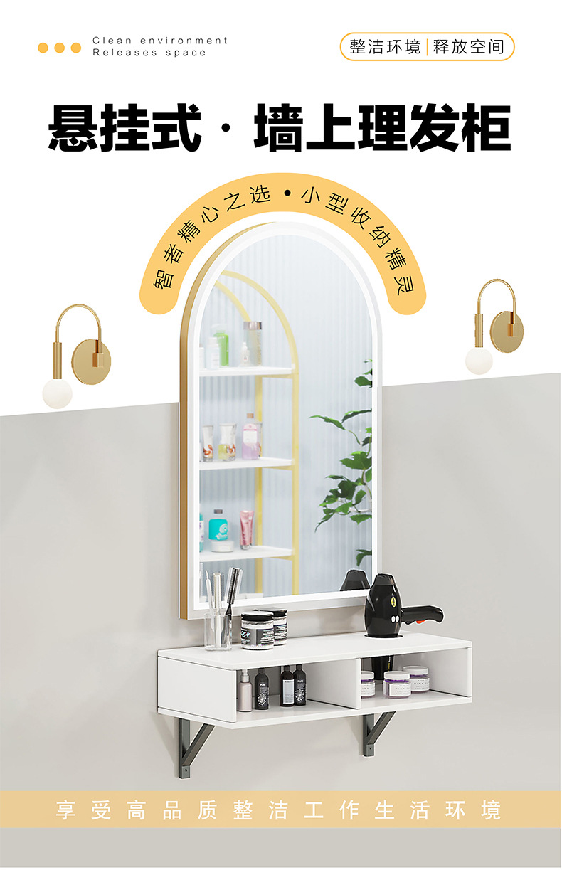 미용실 캐비닛, 이발소 도구 캐비닛, 수납장, 벽걸이 캐비닛, 거울대, 화장대, 모던하고 심플한 디자인