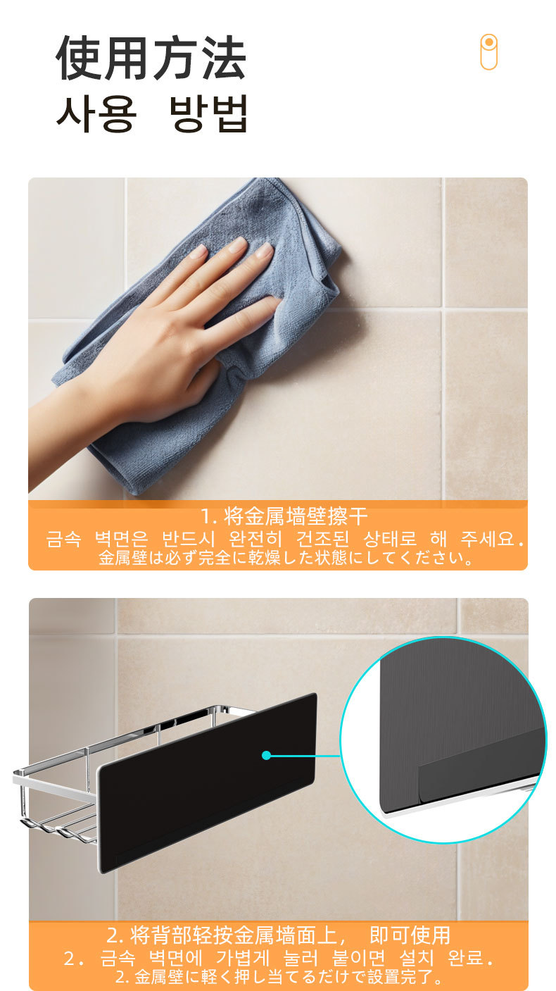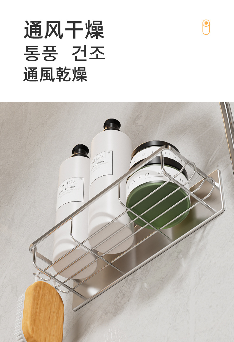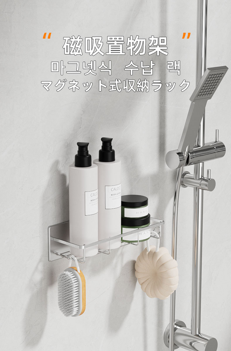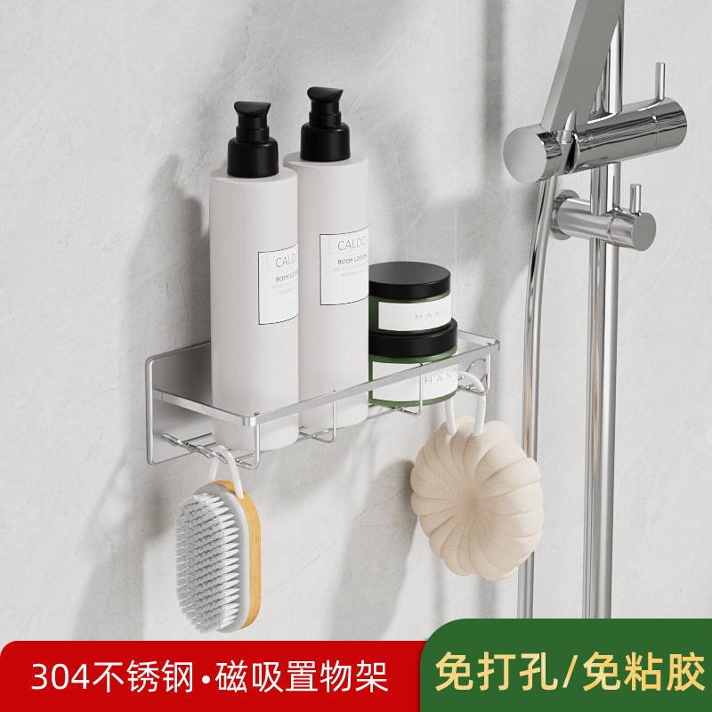 무타공 자석 부착 욕실 수납장 304 스테인리스 욕실 선반 후크 포함