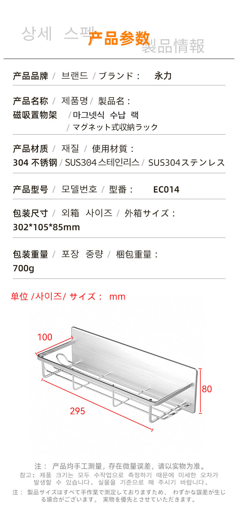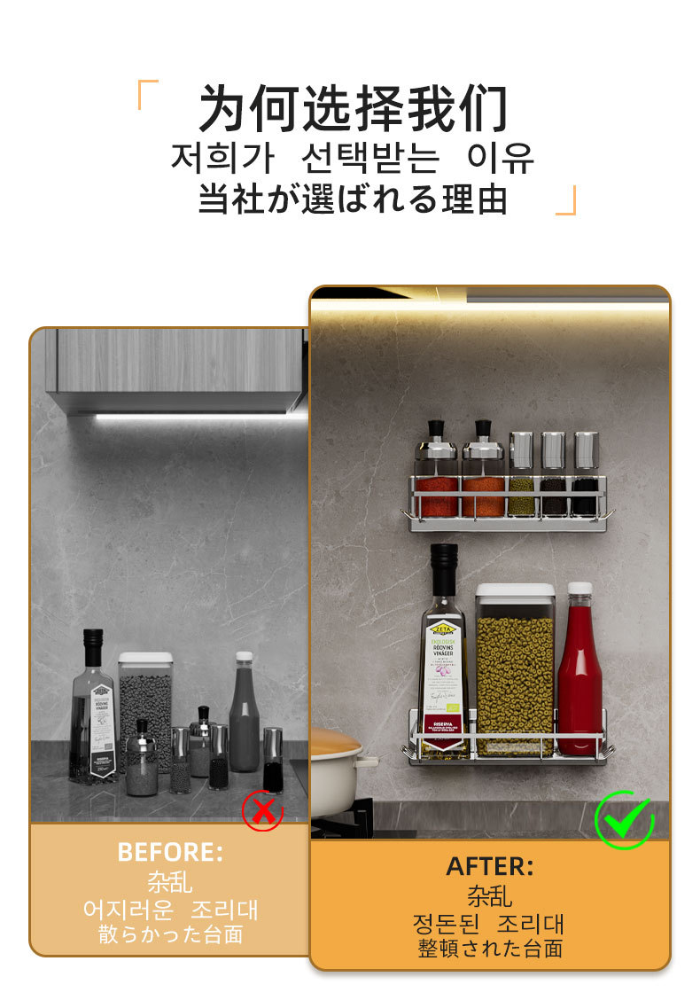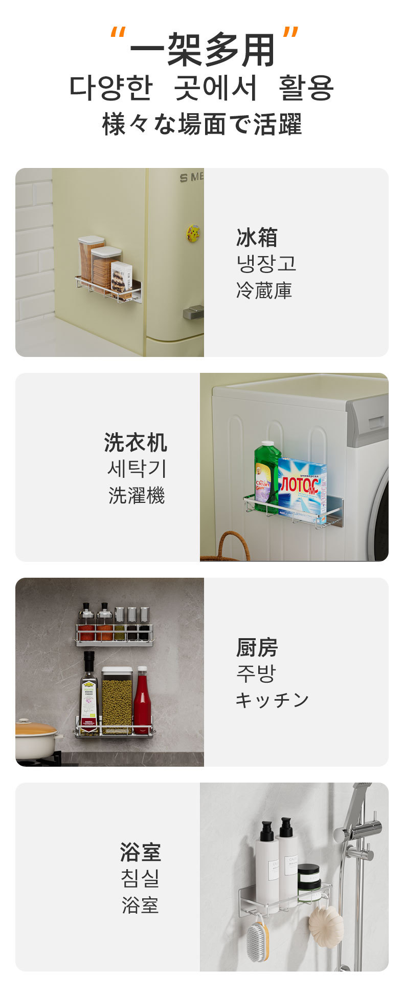 무타공 자석 부착 욕실 수납장 304 스테인리스 욕실 선반 후크 포함