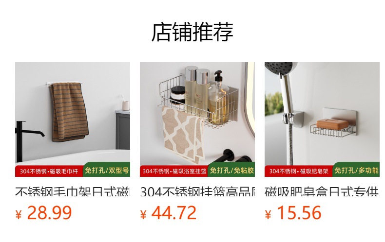 무타공 자석 부착 욕실 수납장 304 스테인리스 욕실 선반 후크 포함스토어 가기