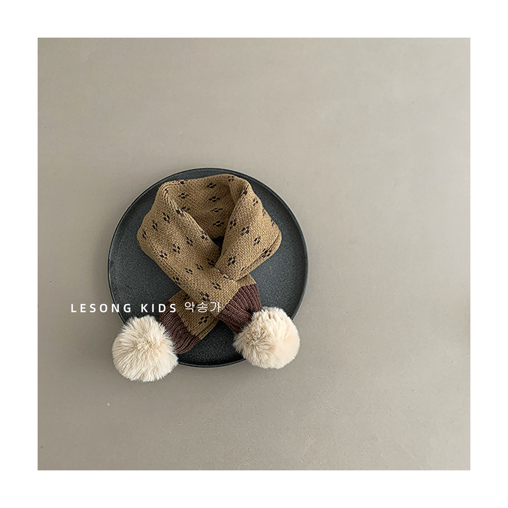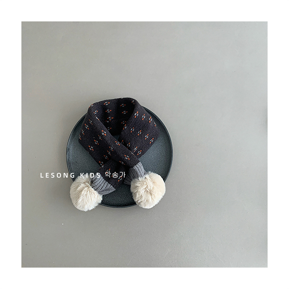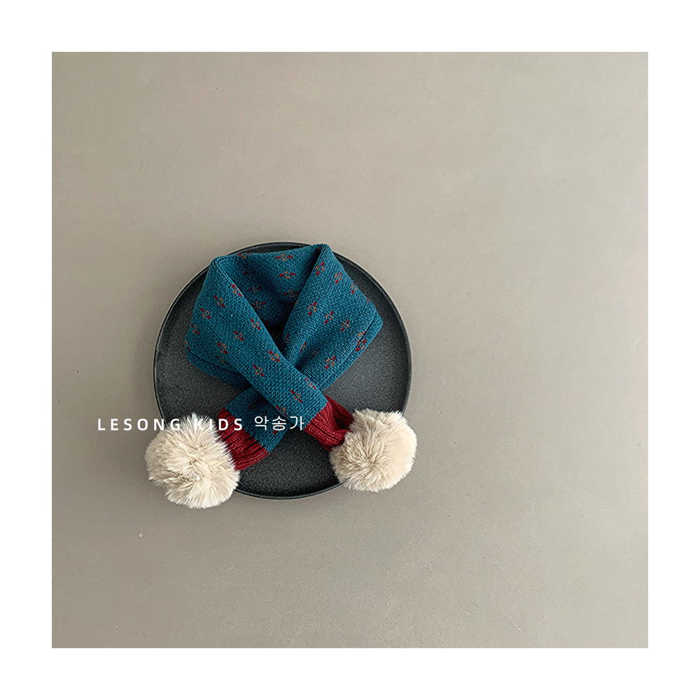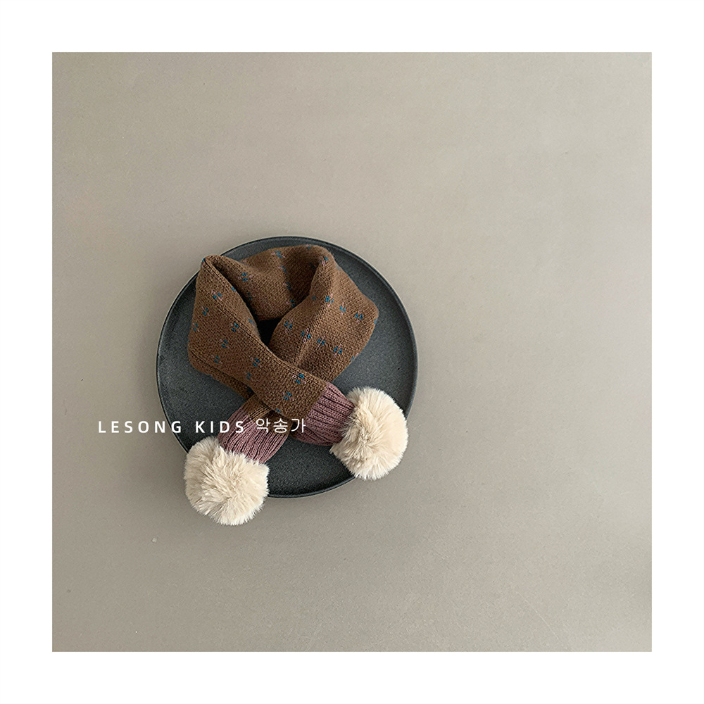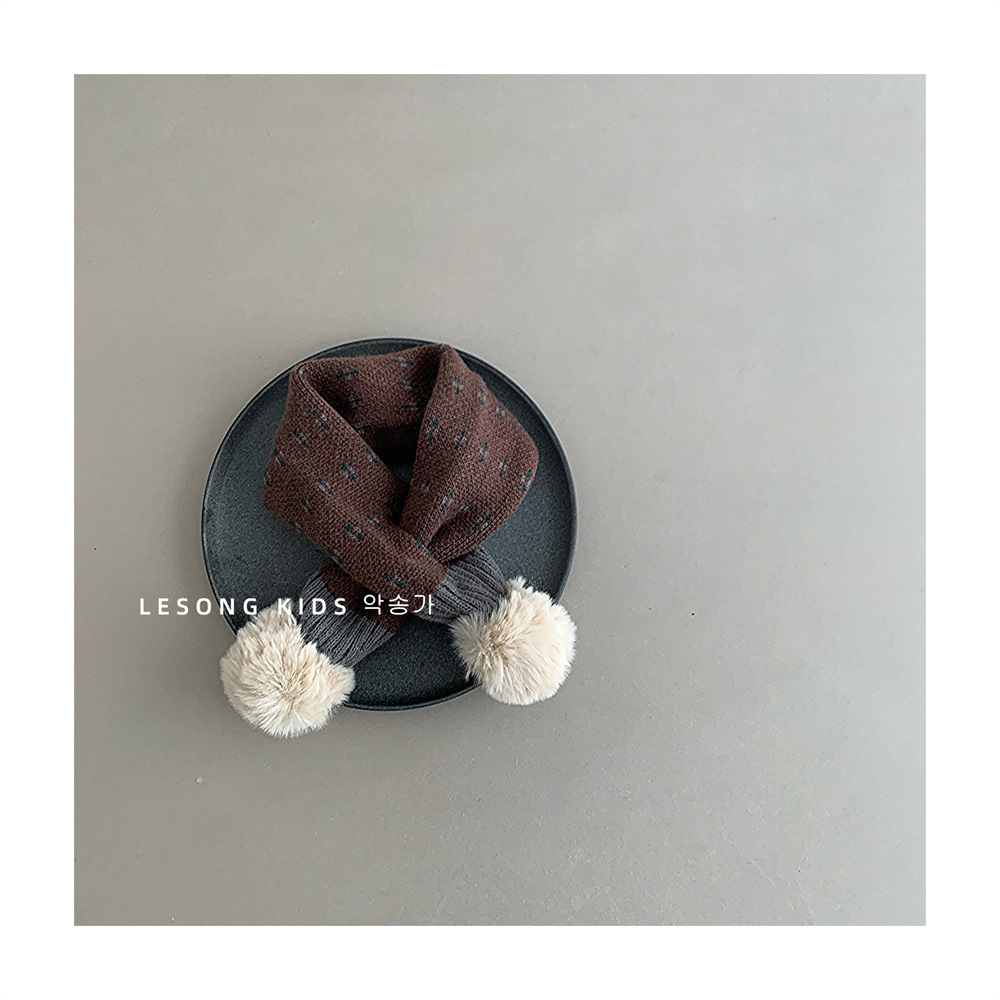 어린이 크로스 스카프 가을과 겨울 새로운 소년과 소녀 방풍 니트 두꺼운 따뜻한 아기의 모피 볼 스카프 목스토어 가기