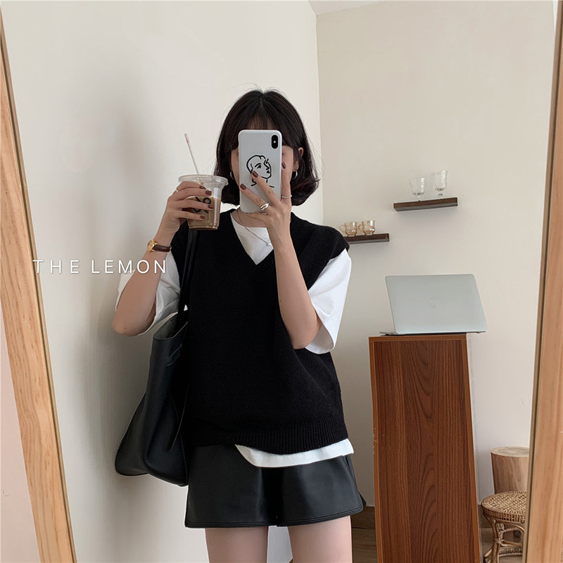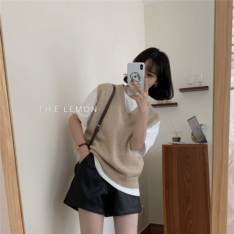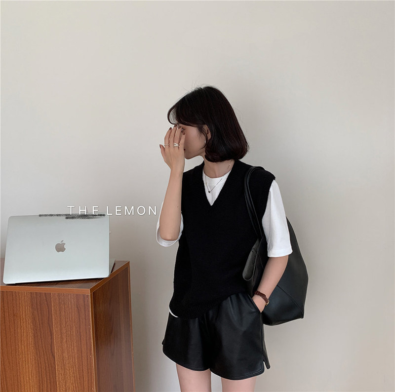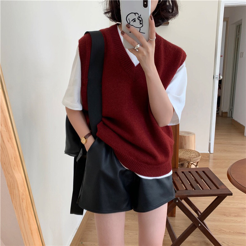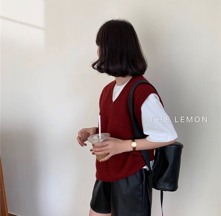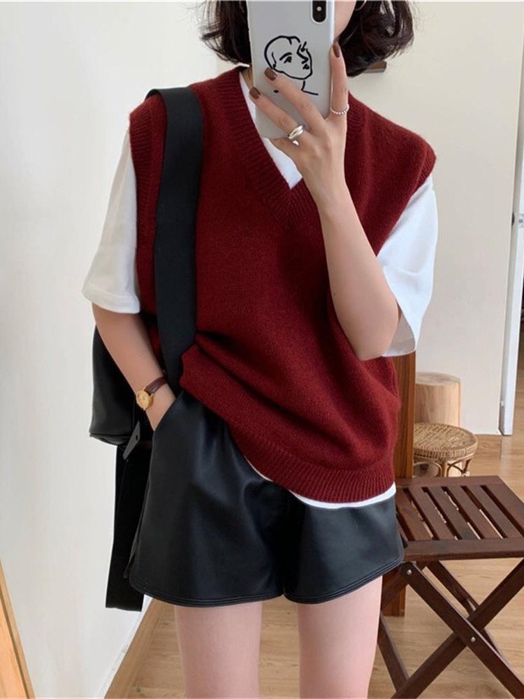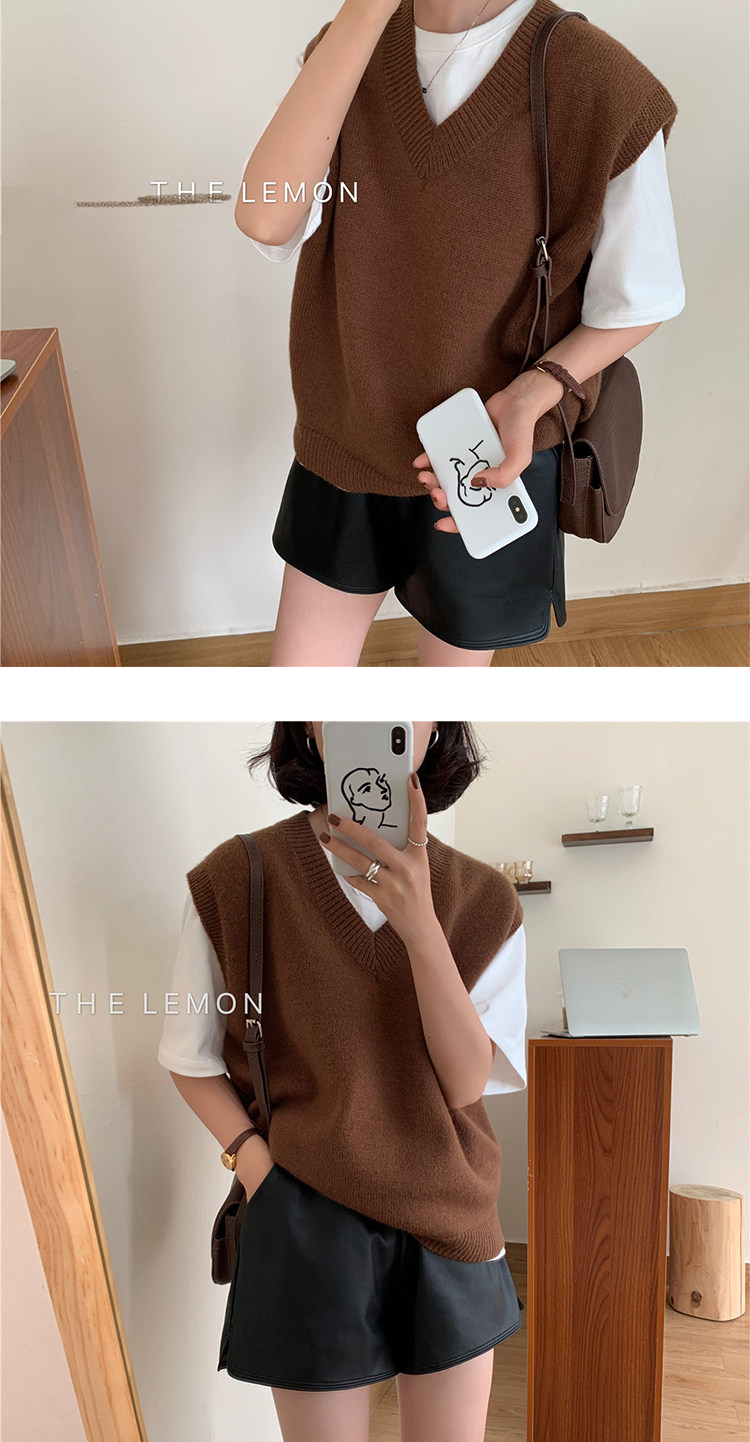유럽 두꺼운 100 순수 양모 조끼 여성 가을 및 겨울 캐시미어 니트 조끼 V-Neck 솔리드 컬러 스웨터 웨이스트 코트스토어 가기