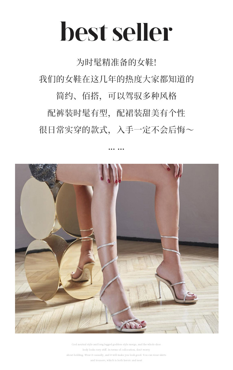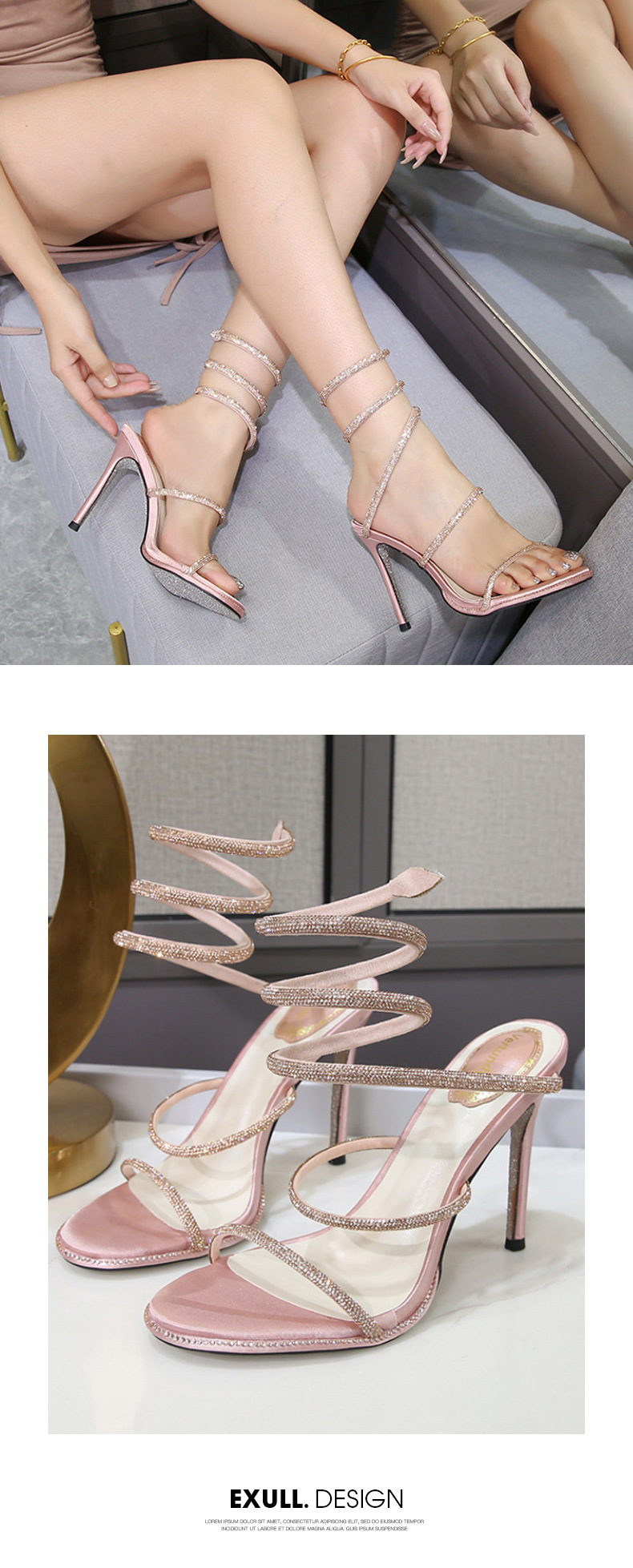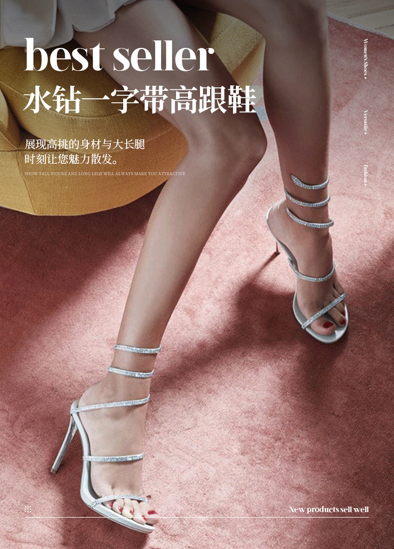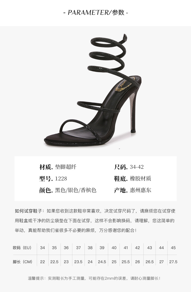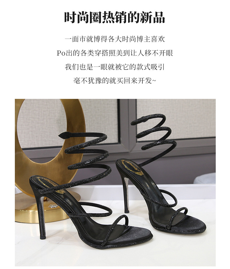 2024 유럽과 미국식 뱀 모양의 랩 스트랩 파인 힐 샌들 여성용 랩 어라운드 로마 샌들 (Open Toe Rhinestones 포함)스토어 가기