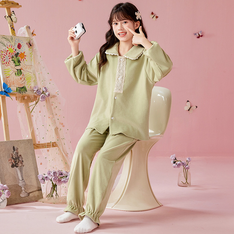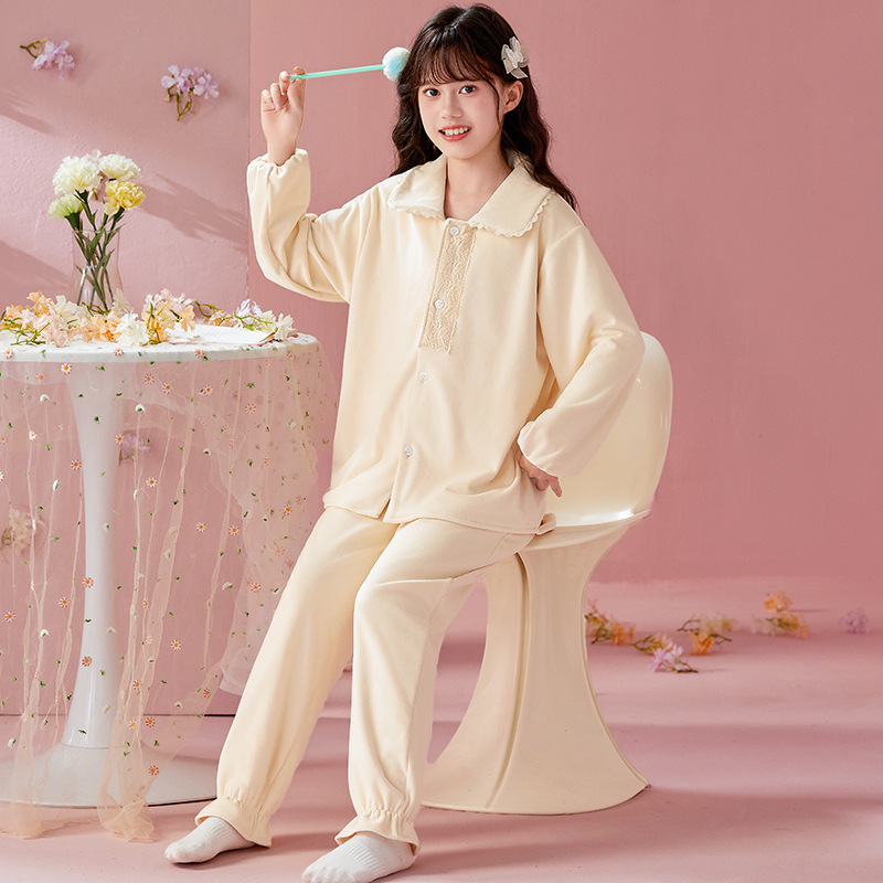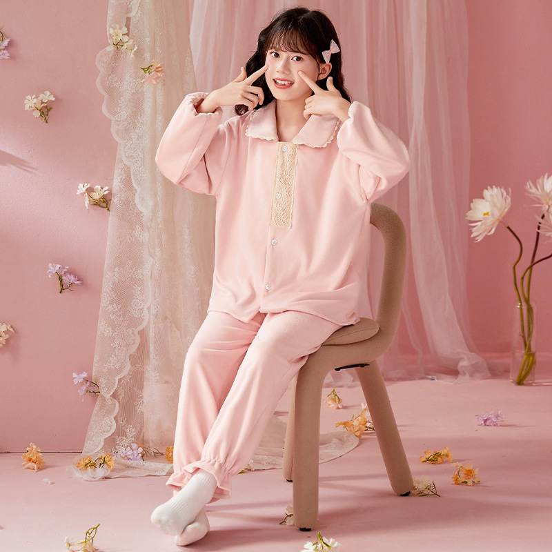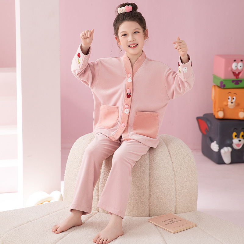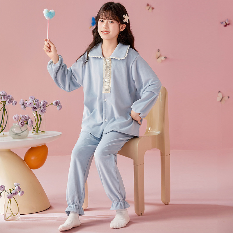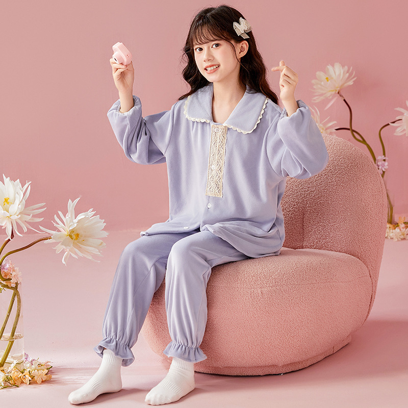 섬 벨벳 달콤한 귀여운 어린이 잠옷 소녀 가을과 겨울 얇은 벨벳 따뜻한 중학생 홈 의류 세트