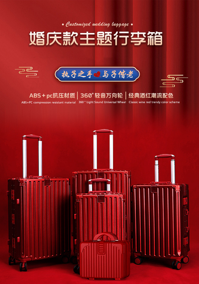 신부용 대용량 2026년형 트렁크형 캐리어, 비밀번호 잠금 여행가방, 신부와 신랑 커플용 도매 가방
