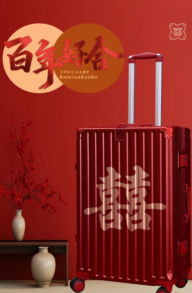 신부용 대용량 2026년형 트렁크형 캐리어, 비밀번호 잠금 여행가방, 신부와 신랑 커플용 도매 가방스토어 가기