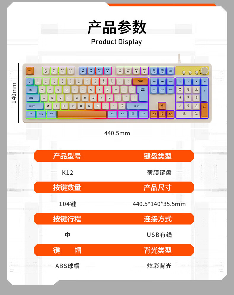 • 업그레이드된 손잡이 버전 - 생생한 오렌지색 단일 키보드 - RGB 멋진 조명 효과