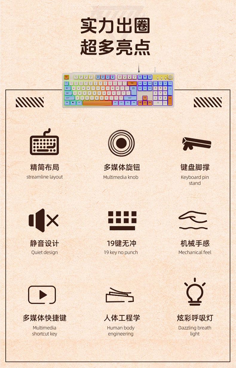 • 업그레이드된 손잡이 버전 - Dai Zilan 단일 키보드 - RGB 멋진 조명 효과