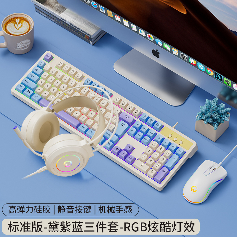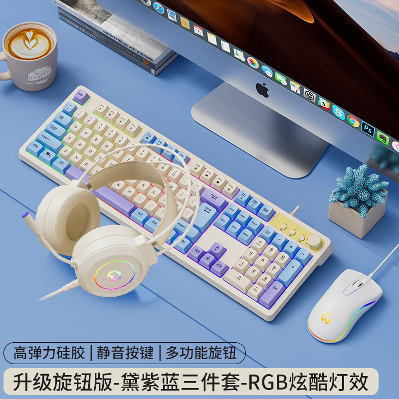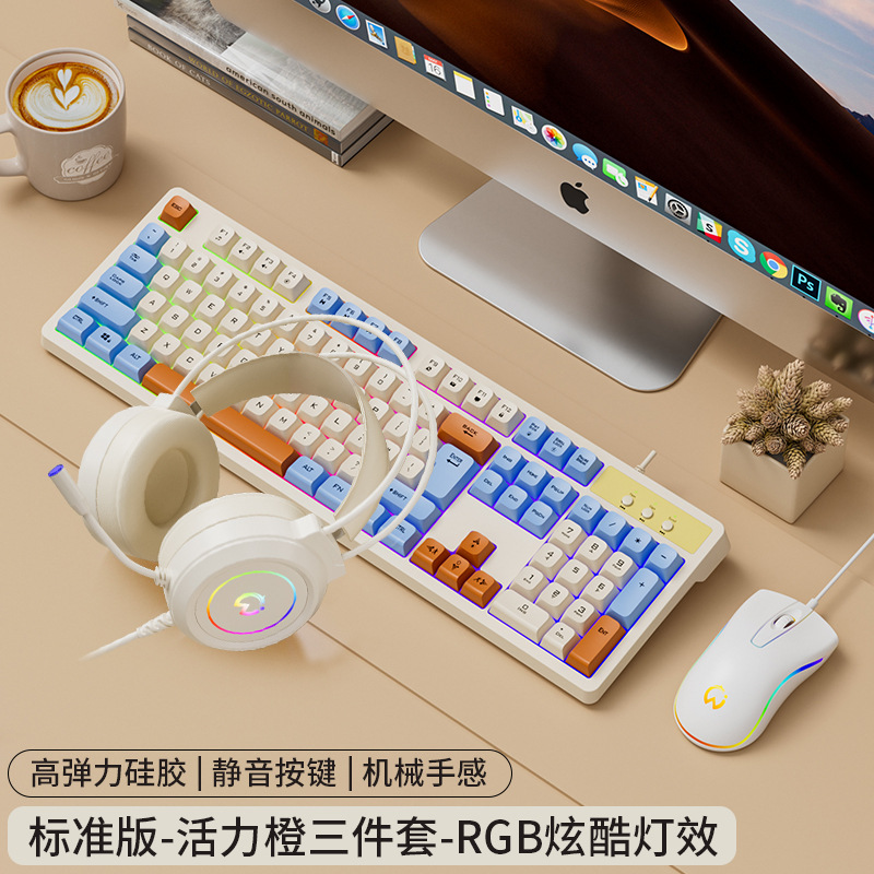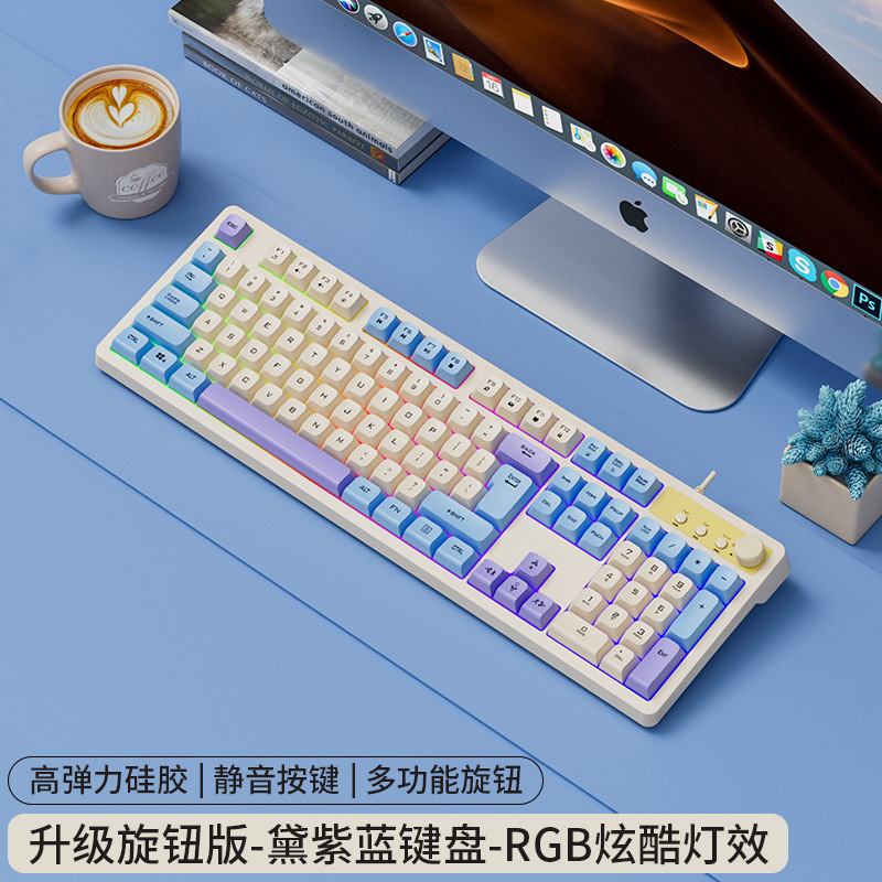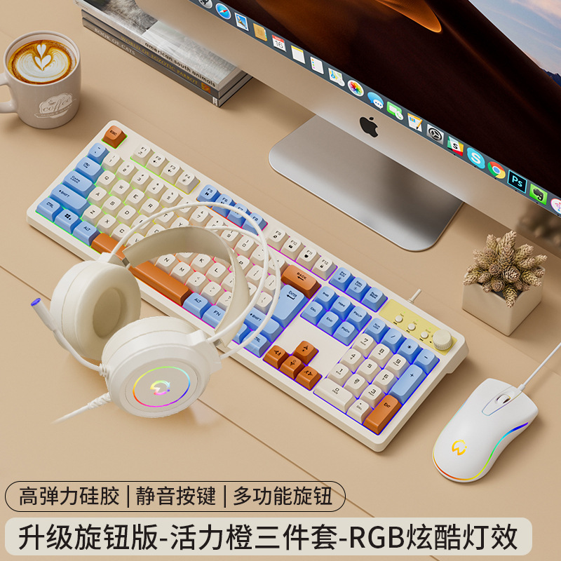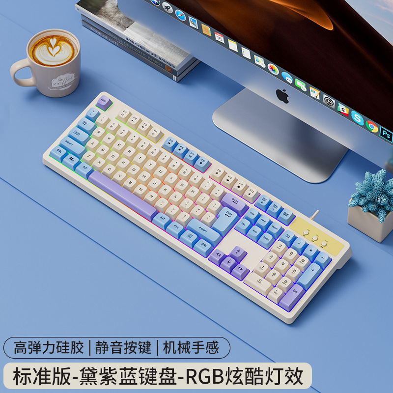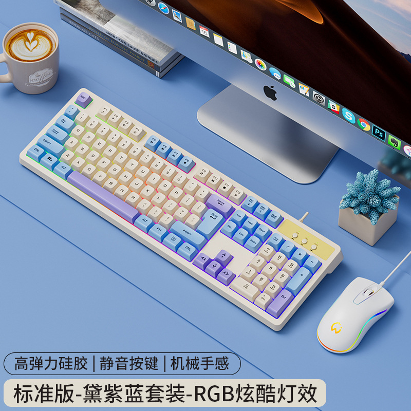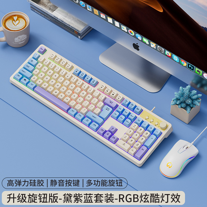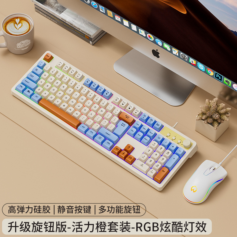 기계식 느낌의 키보드 마우스 세트 유선 데스크탑 컴퓨터 노트북 사무용 게임용 e스포츠 노브 RGB USB