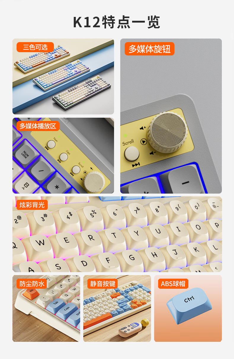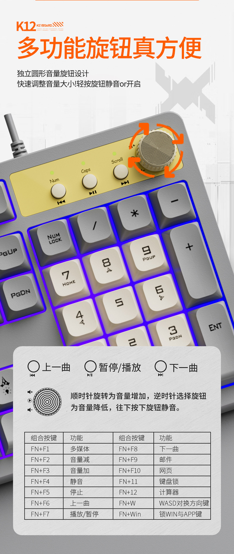 • 업그레이드된 손잡이 버전 - 크림 그레이 싱글 키보드 - RGB 멋진 조명 효과