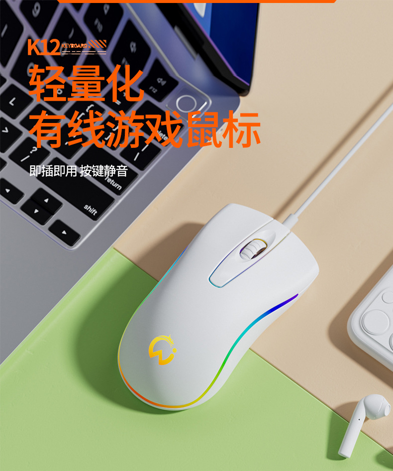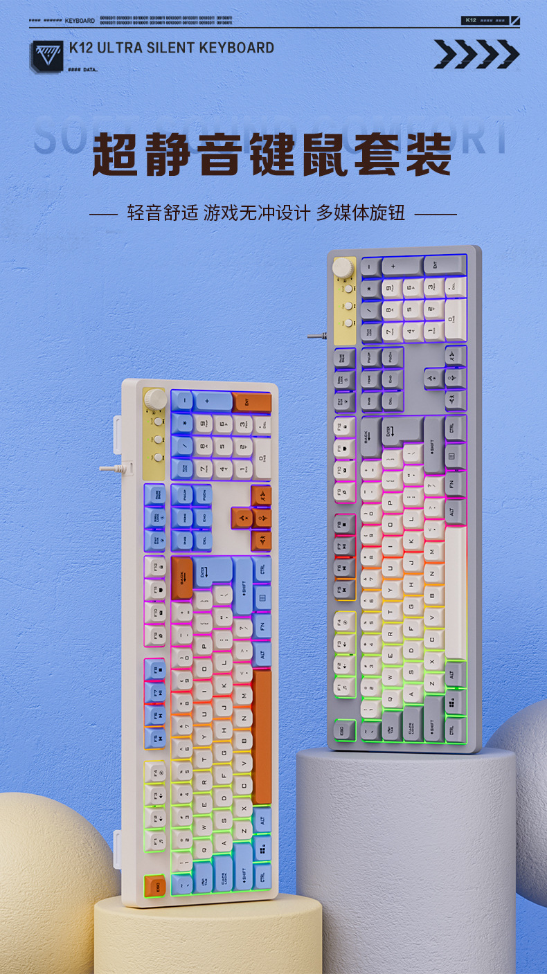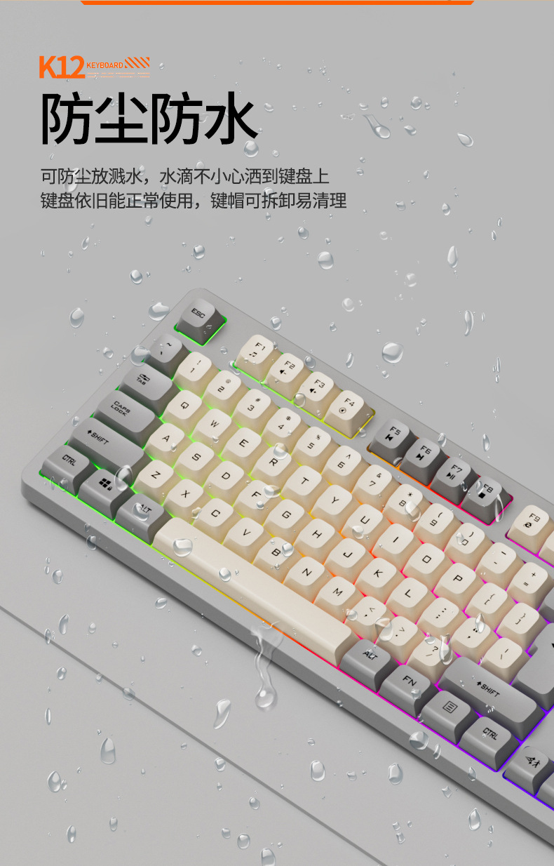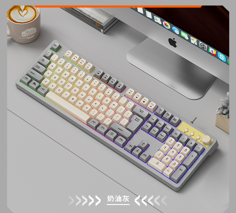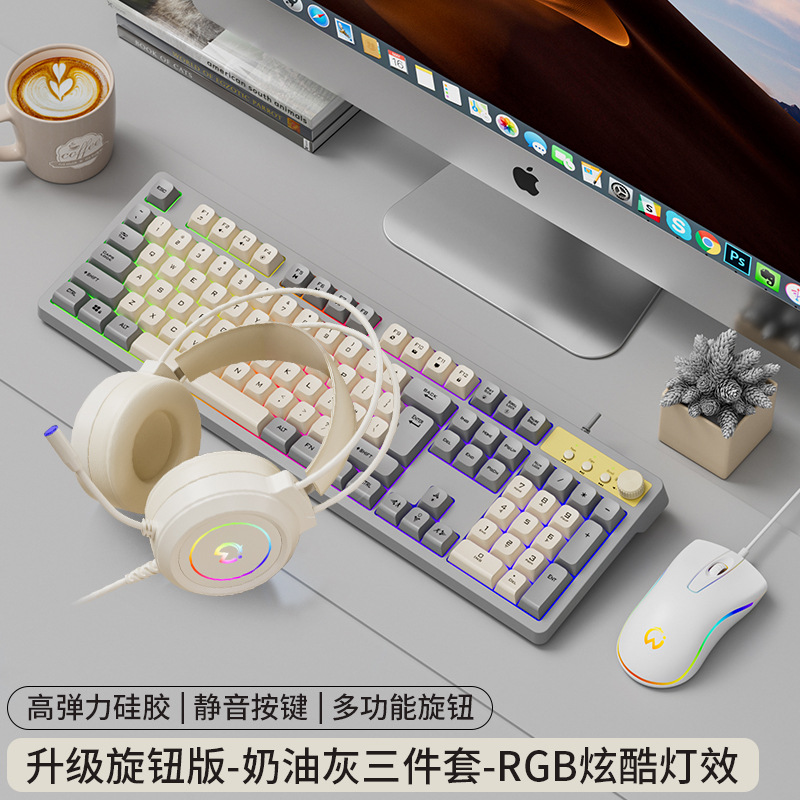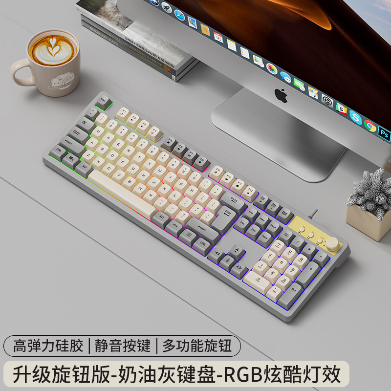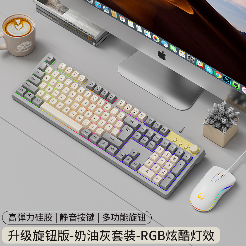 • 업그레이드된 손잡이 버전 - 크림 그레이 키보드 및 마우스 세트 - RGB 멋진 조명 효과