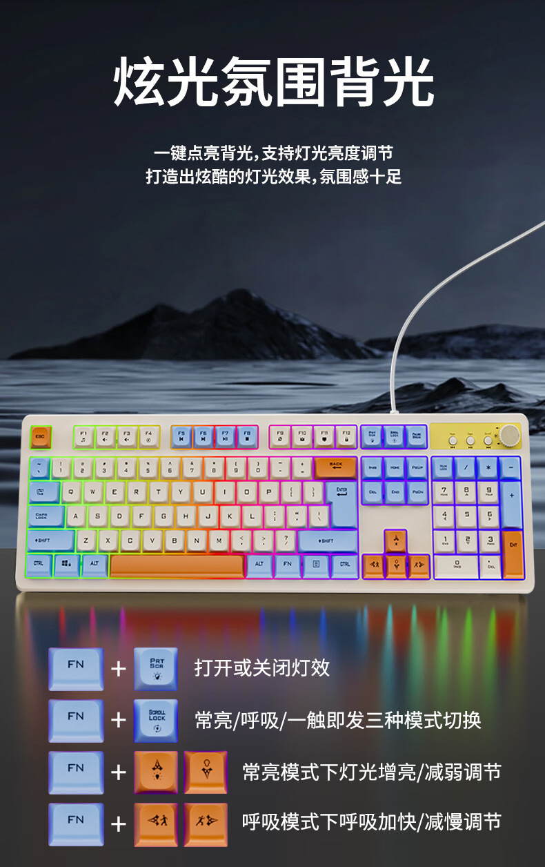 • 표준 버전 - 크림 그레이 단일 키보드 - RGB 멋진 조명 효과