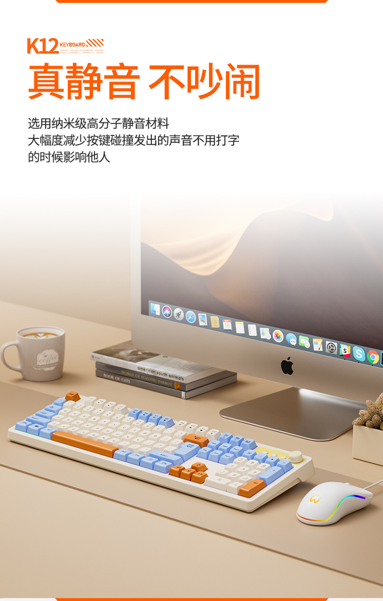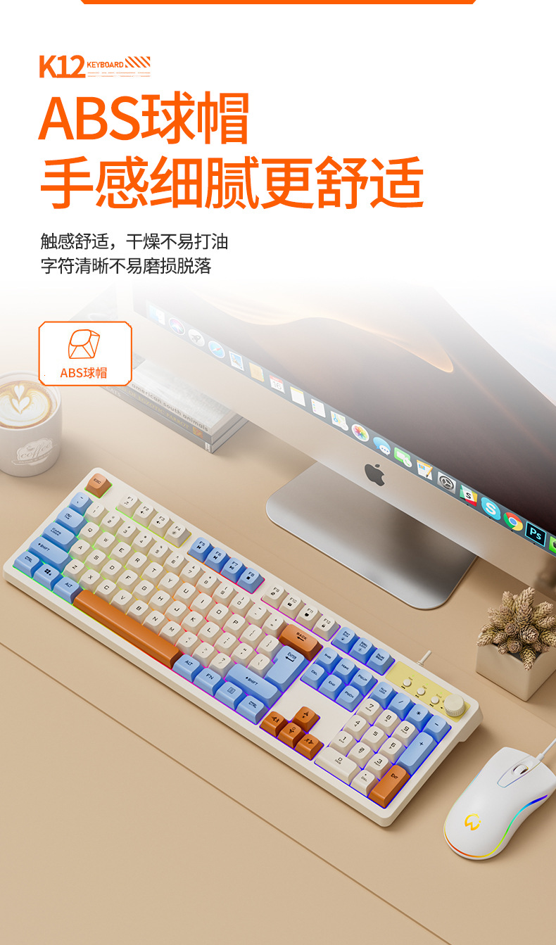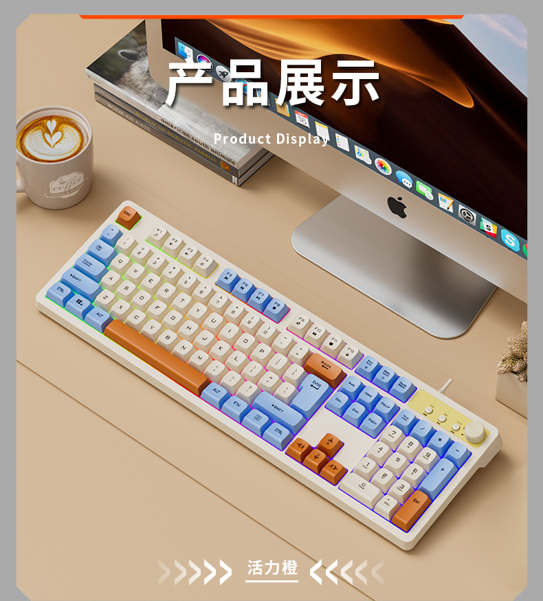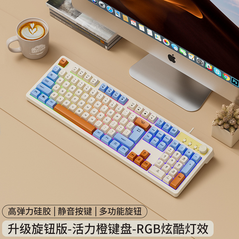 • 업그레이드된 손잡이 버전 - 생생한 주황색 키보드 및 마우스 세트 - RGB 멋진 조명 효과