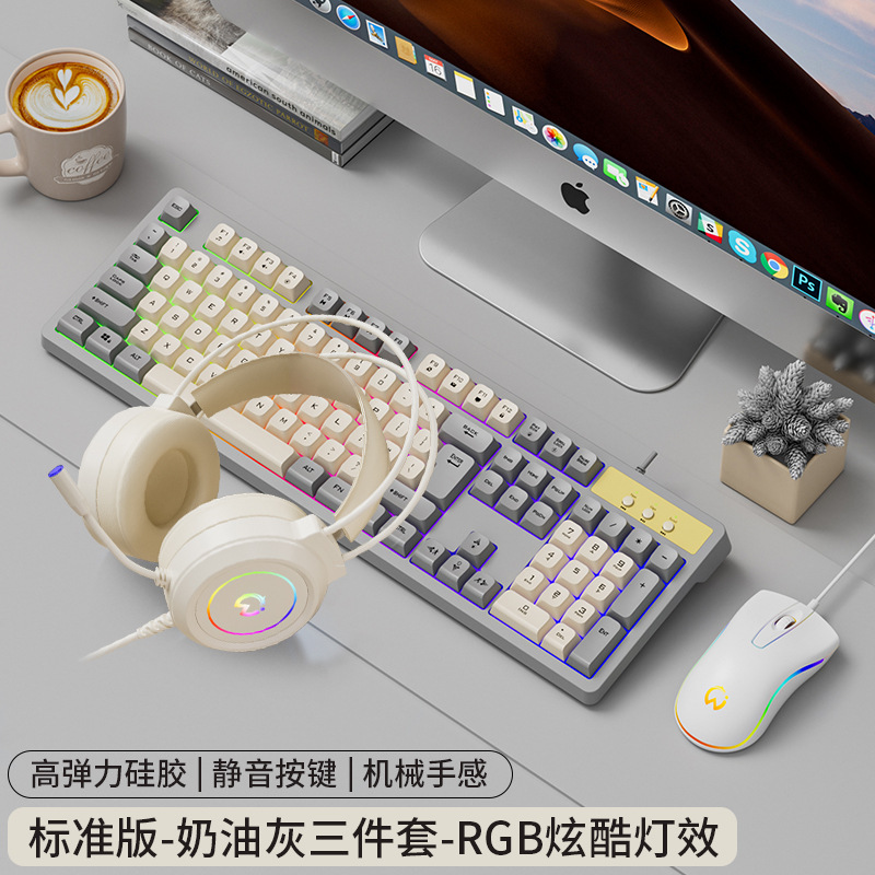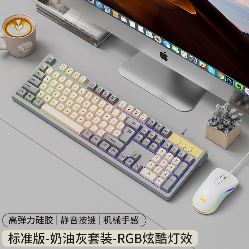 • 표준 버전 - 크림 그레이 키보드 및 마우스 세트 - RGB 멋진 조명 효과