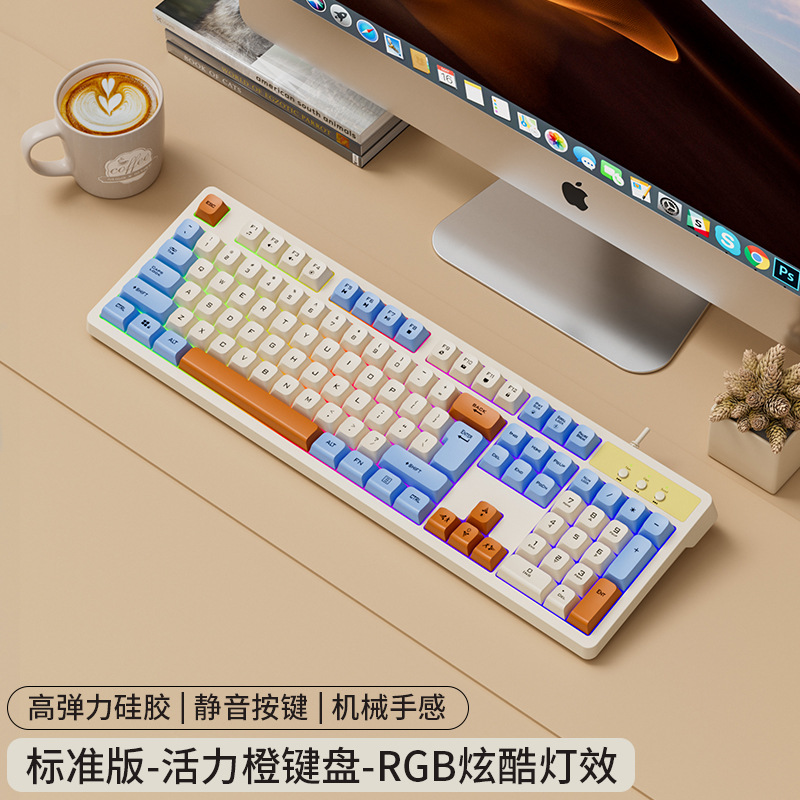• 표준 버전 - 생생한 주황색 키보드 및 마우스 세트 - RGB 멋진 조명 효과
