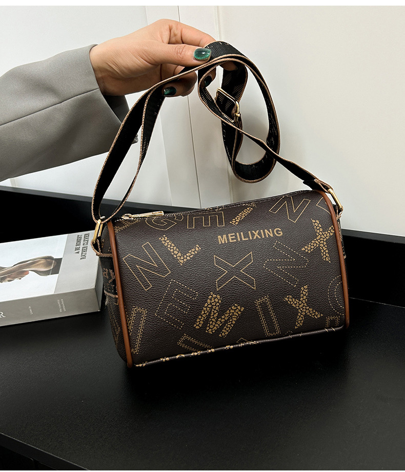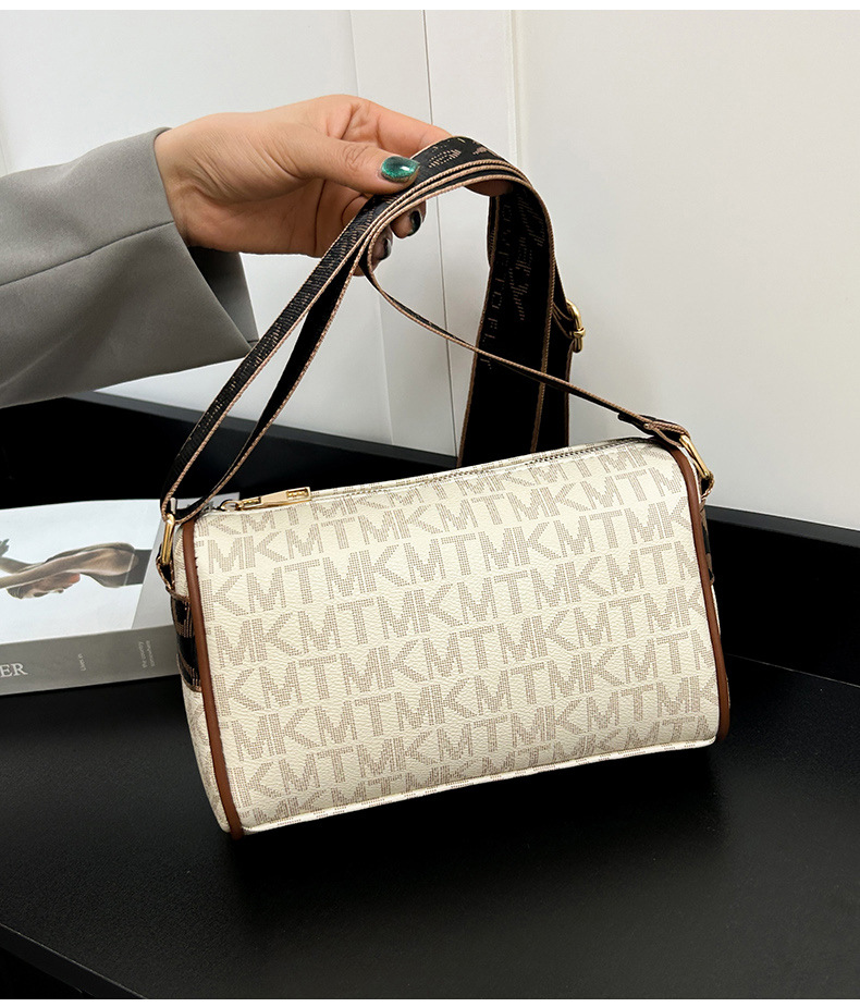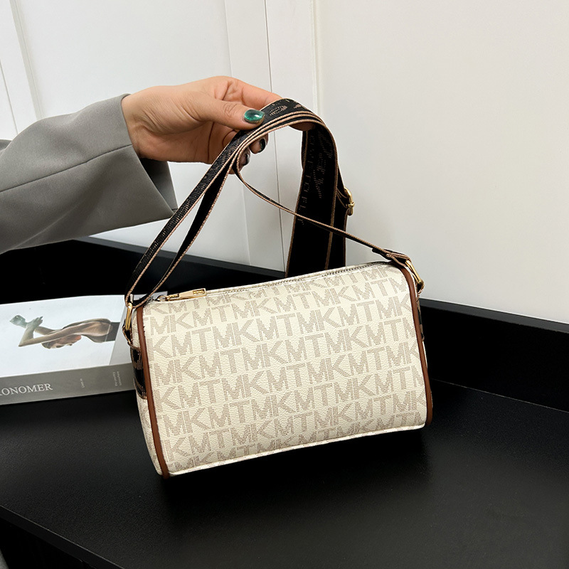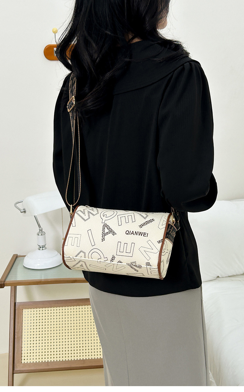 국경 간 패션 보스턴 베개 가방 세련된 올 매치 어깨 가방 편지 인쇄 넓은 어깨 끈 크로스 바디 언더암 가방
