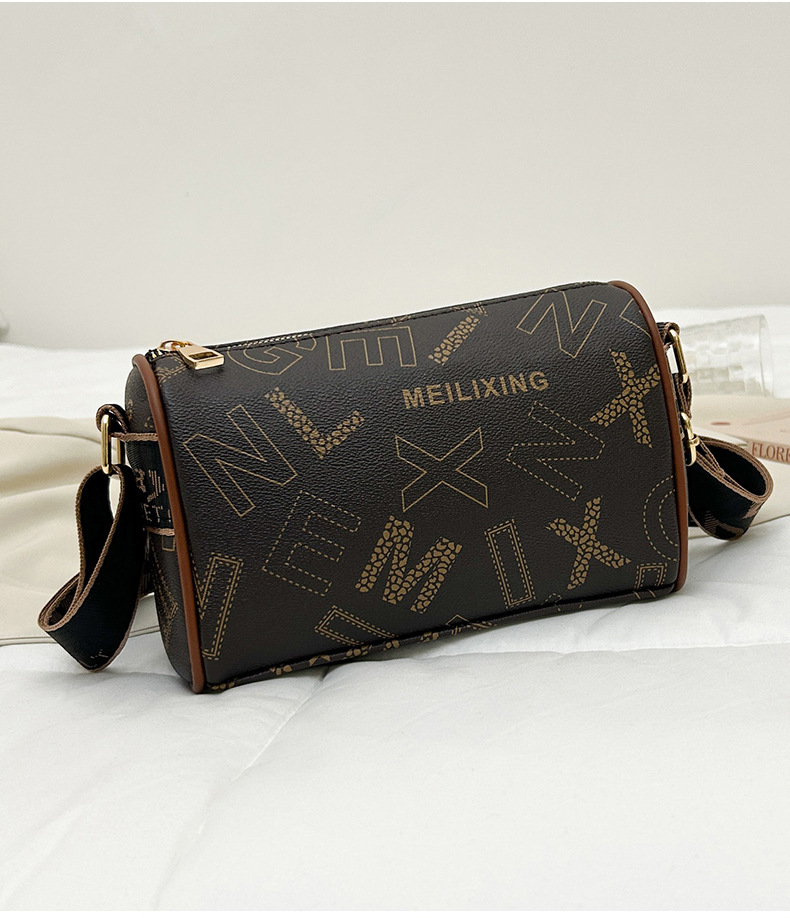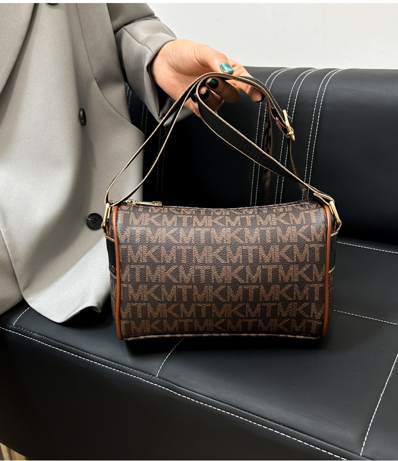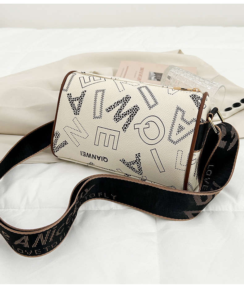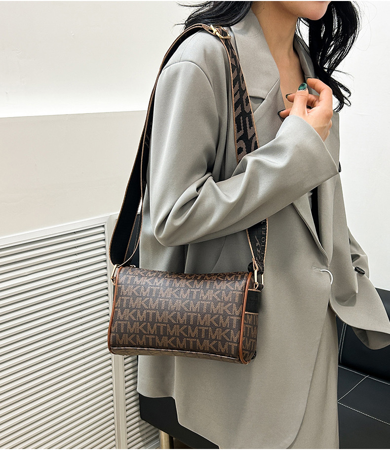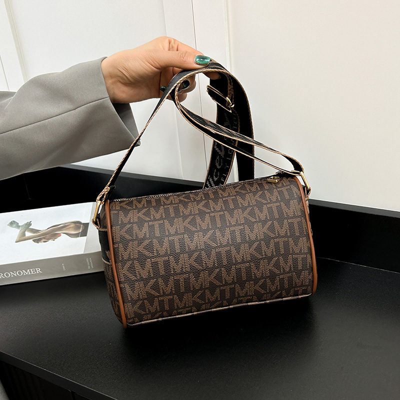 국경 간 패션 보스턴 베개 가방 세련된 올 매치 어깨 가방 편지 인쇄 넓은 어깨 끈 크로스 바디 언더암 가방