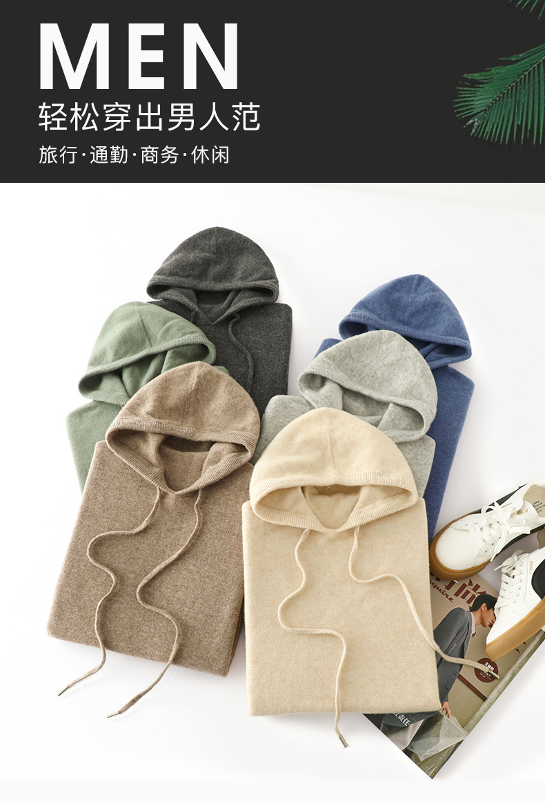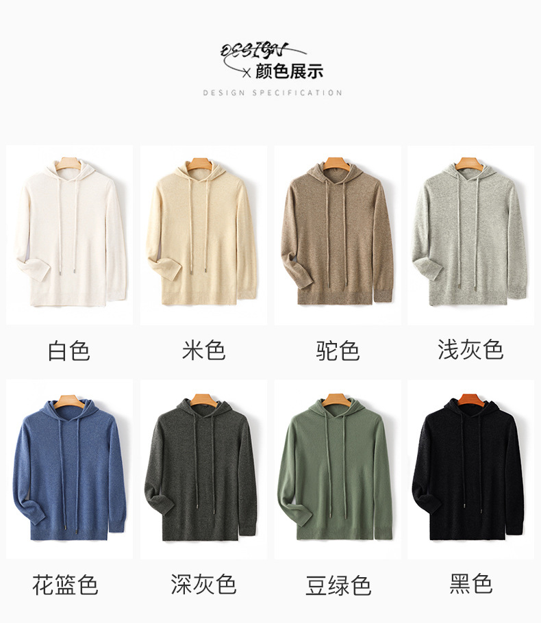 가을과 겨울 새로운 1 차 의류 캐시미어 스웨터 남자 후드 스웨터 솔리드 컬러 니트 울 후디 스웨터베이스 레이어 셔츠