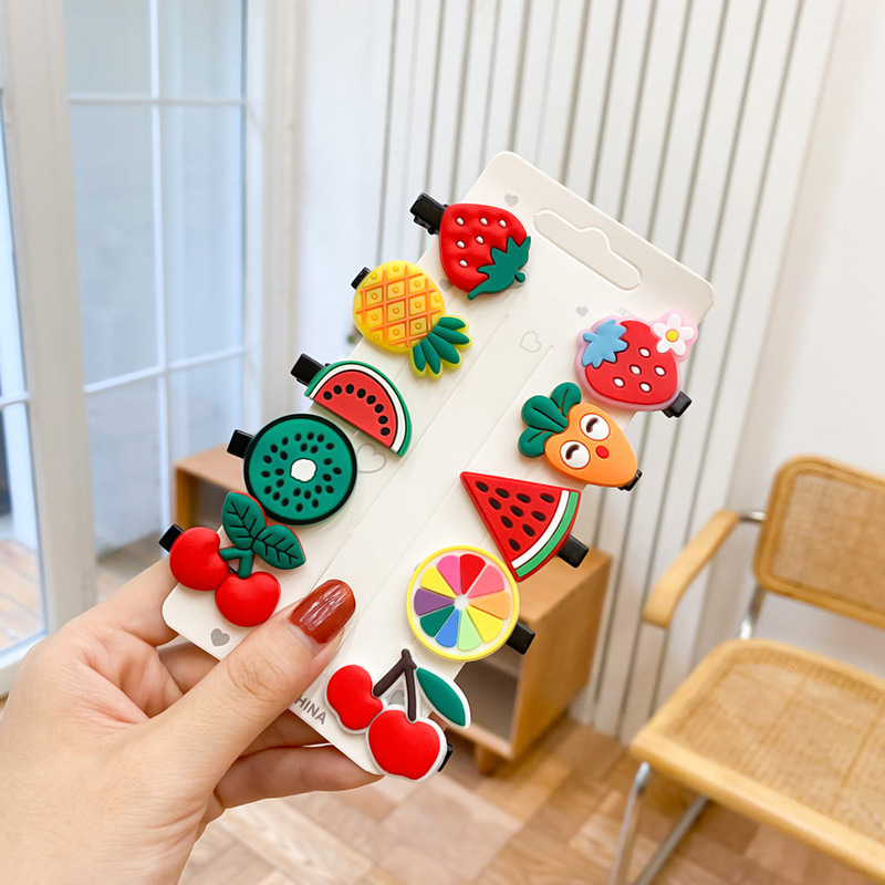 재고 도매 어린이 머리핀 소녀 BB 클립 앞머리 가장자리 클립 공주 머리핀 클립 부드러운 고무 과일 시리즈 대외 무역스토어 가기