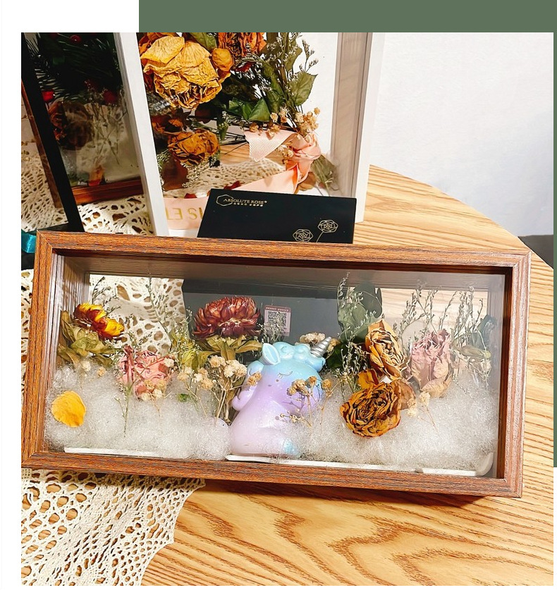母亲节团建干花相框手工diy木质中空立体双面透明亚克力摆台批发