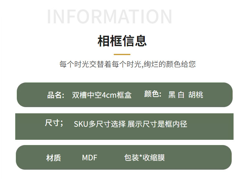 木质中空5cm相框桌面摆台A4立体相框软陶粘土干花标本正方形相框