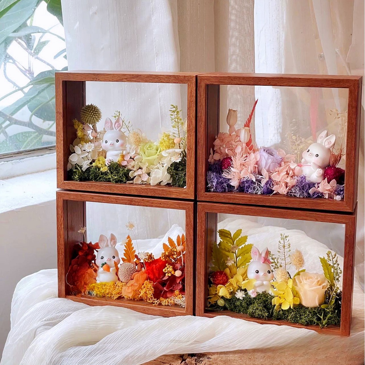 나무 속이 빈 입체 드라이플라워 액자 수제 DIY 양면 투명 아크릴 액자 디스플레이 박스 도매스토어 가기