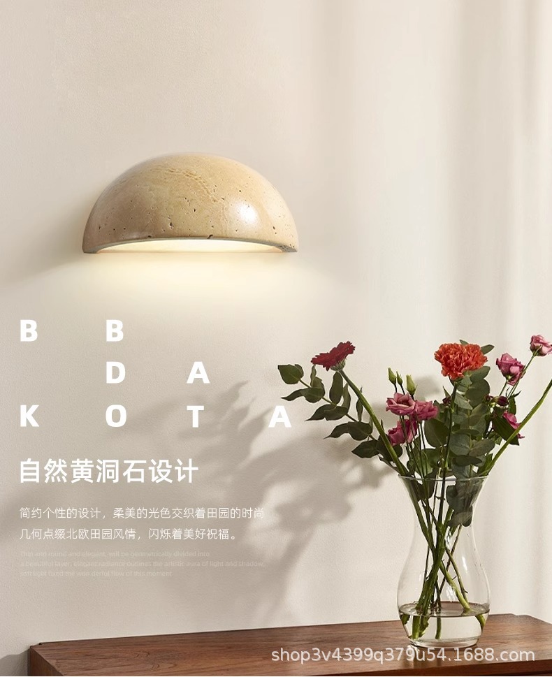 벽 램프 빈티지 침묵 바람 노란 동굴 돌 침실 침실 램프 북유럽 디자인 감각 반 원형 거실 복도 배경 벽 램프스토어 가기