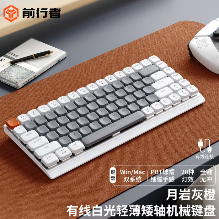 • 문스톤 그레이 오렌지 [무선 3모드-84키] 브라운 스위치-싱글 키보드