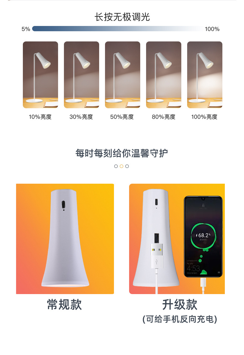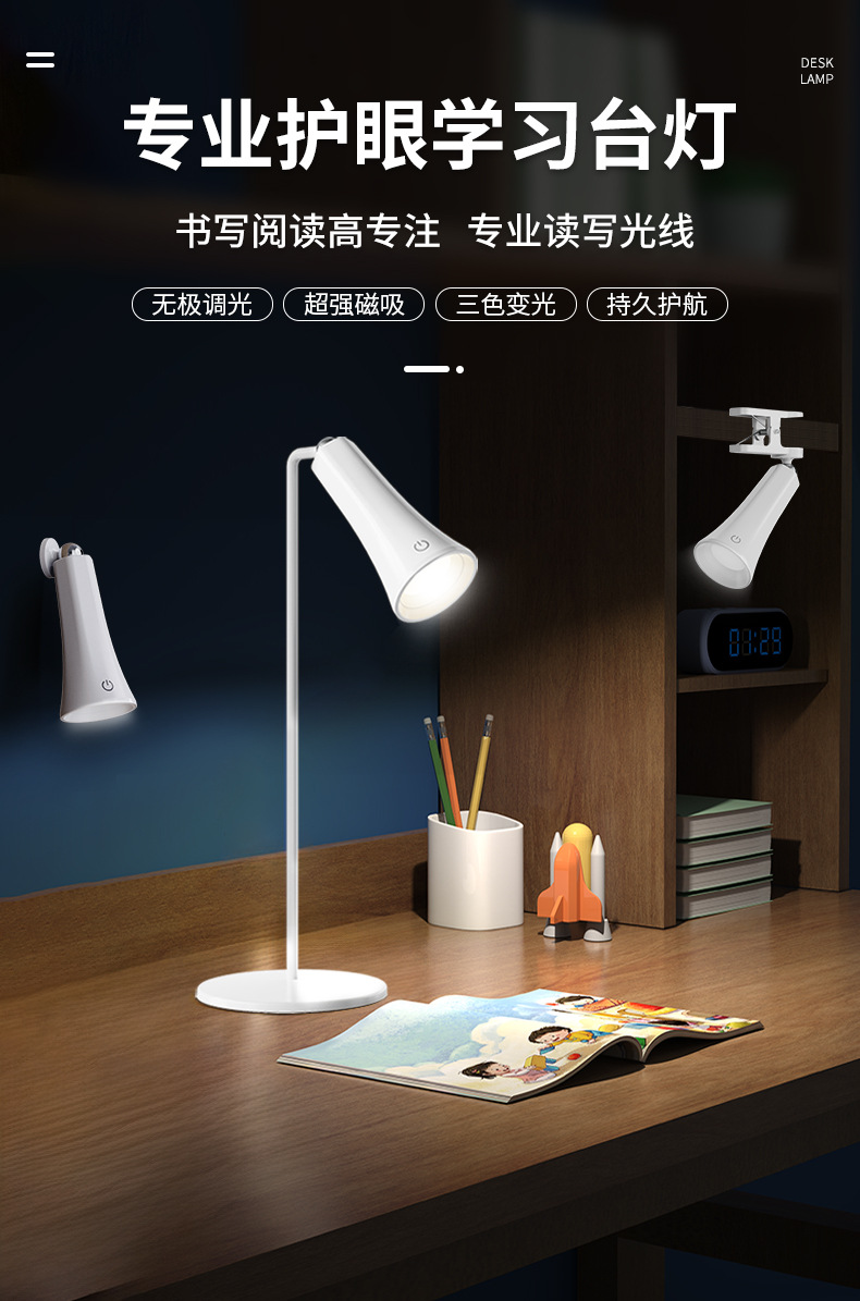 다기능 자기 흡입 램프 led 침실 머리맡 벽 램프 학생 기숙사 학습 책상 램프 비상 손전등 선물