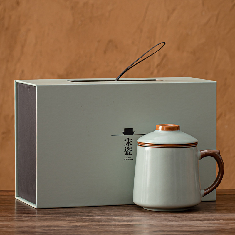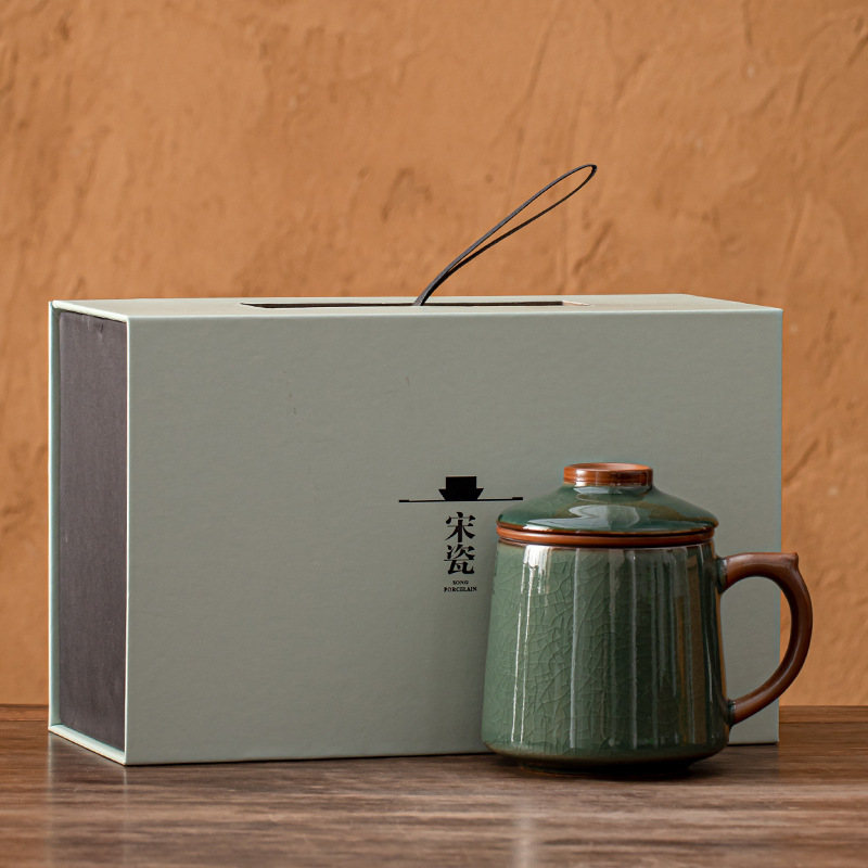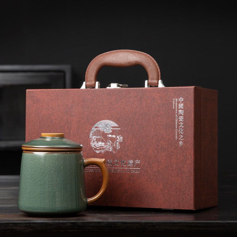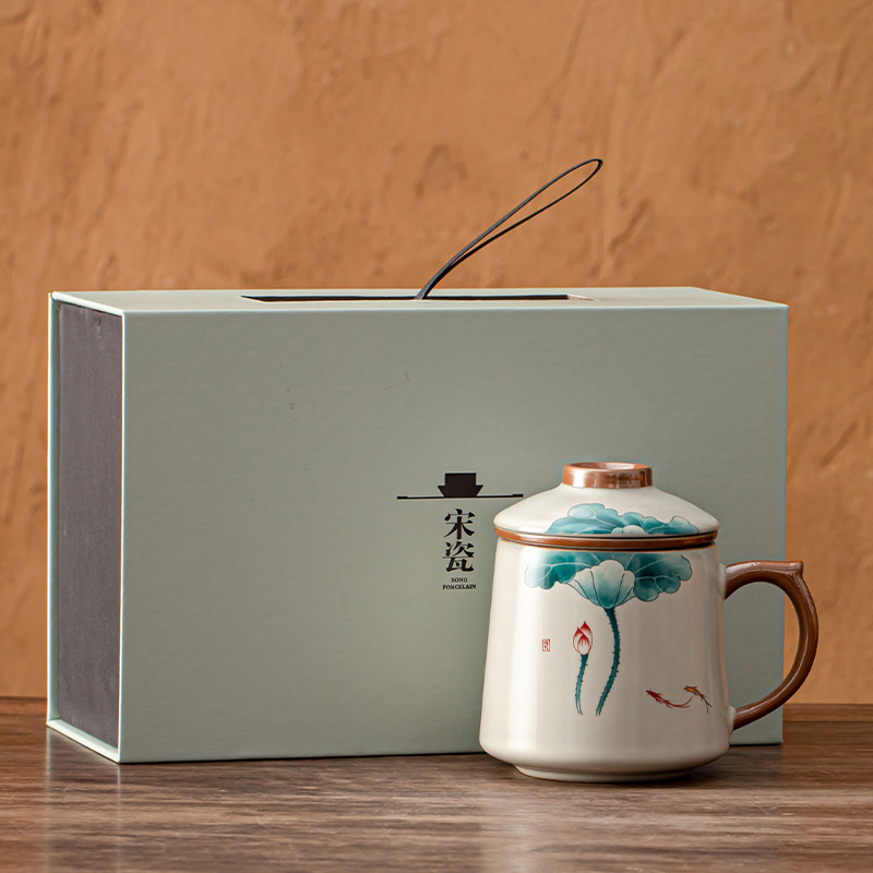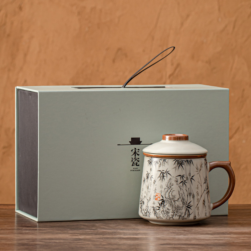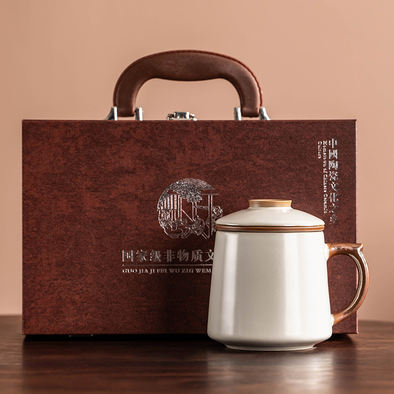 필터 물컵 루야오 찻잔 뚜껑 포함 머그컵 중국식 개인 사무실 차 끓이기 명절 스승의 날 선물 세트
