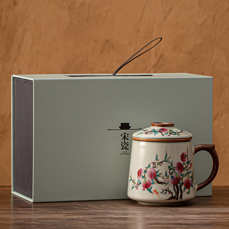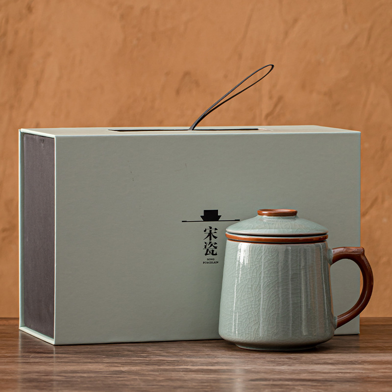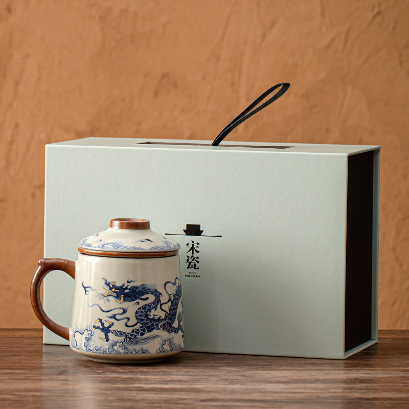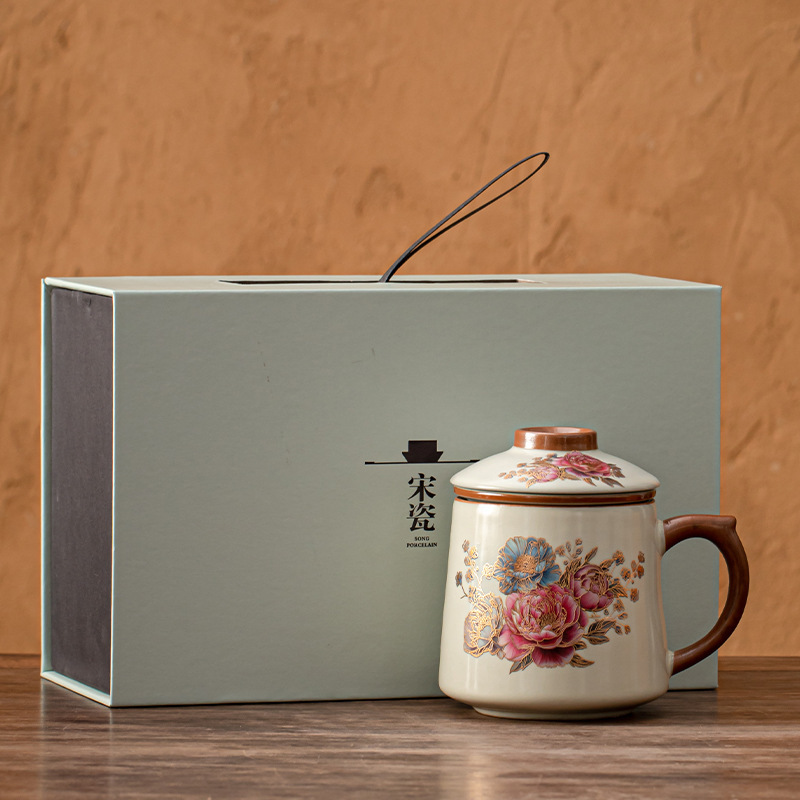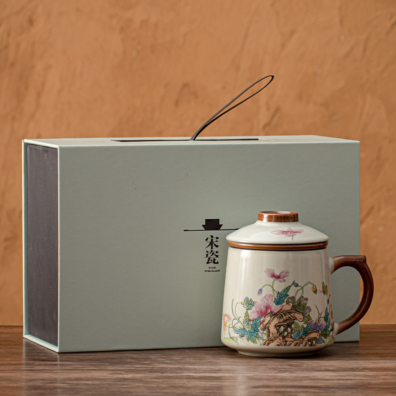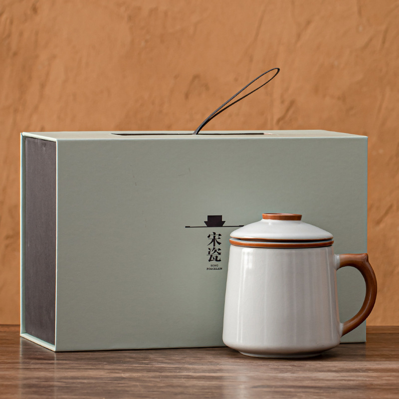 필터 물컵 루야오 찻잔 뚜껑 포함 머그컵 중국식 개인 사무실 차 끓이기 명절 스승의 날 선물 세트