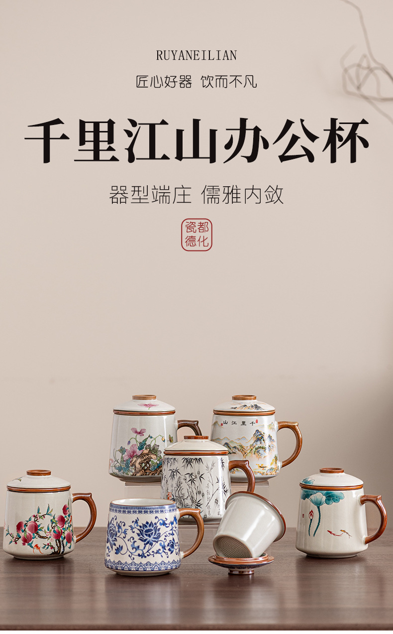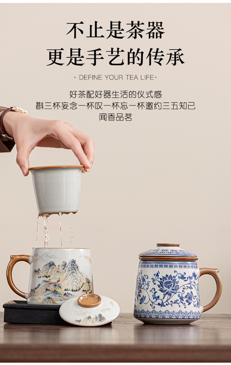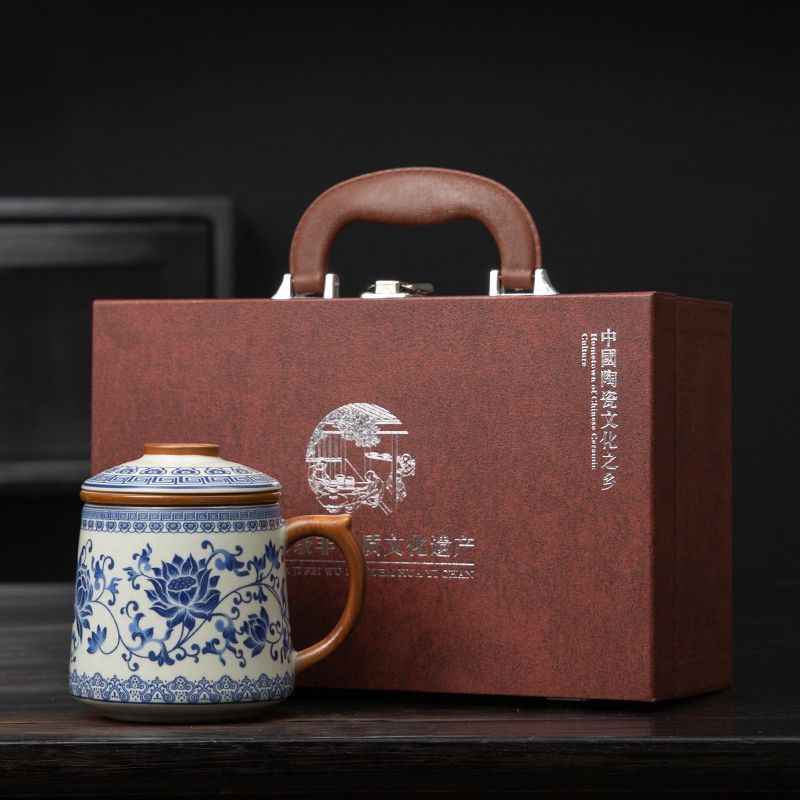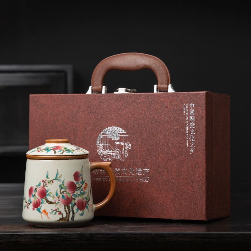 필터 물컵 루야오 찻잔 뚜껑 포함 머그컵 중국식 개인 사무실 차 끓이기 명절 스승의 날 선물 세트스토어 가기