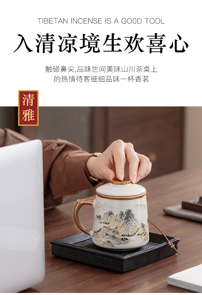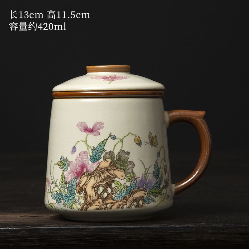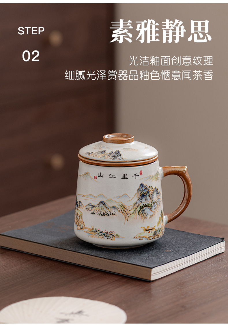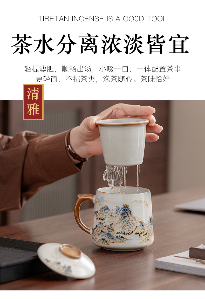필터 물컵 루야오 찻잔 뚜껑 포함 머그컵 중국식 개인 사무실 차 끓이기 명절 스승의 날 선물 세트스토어 가기