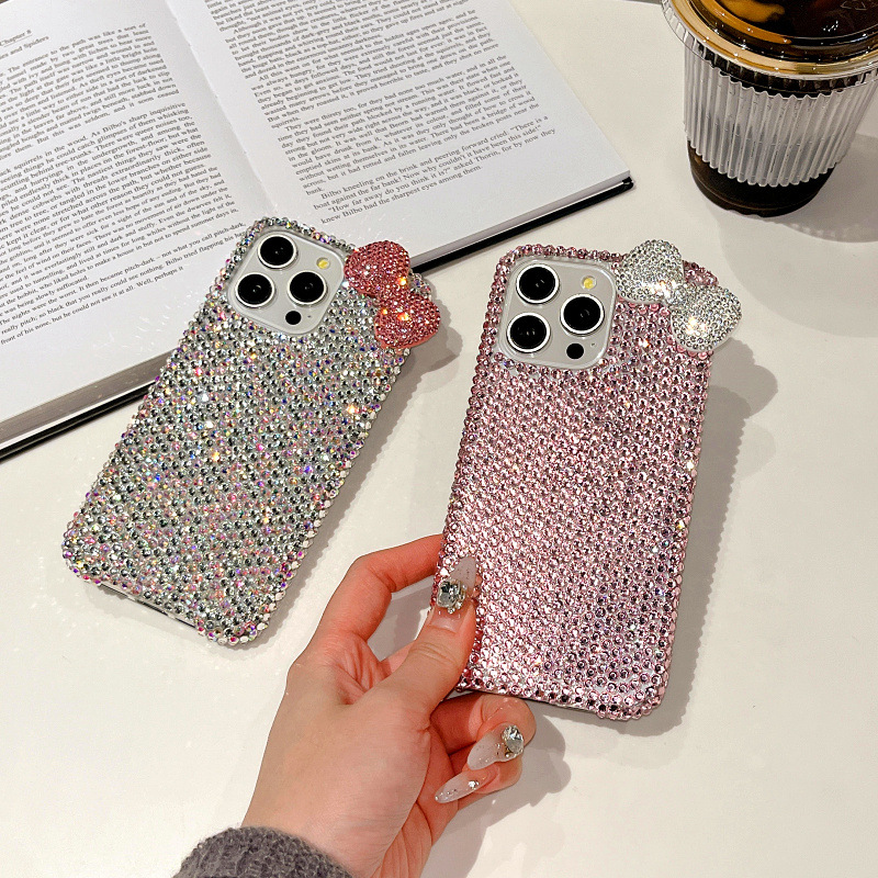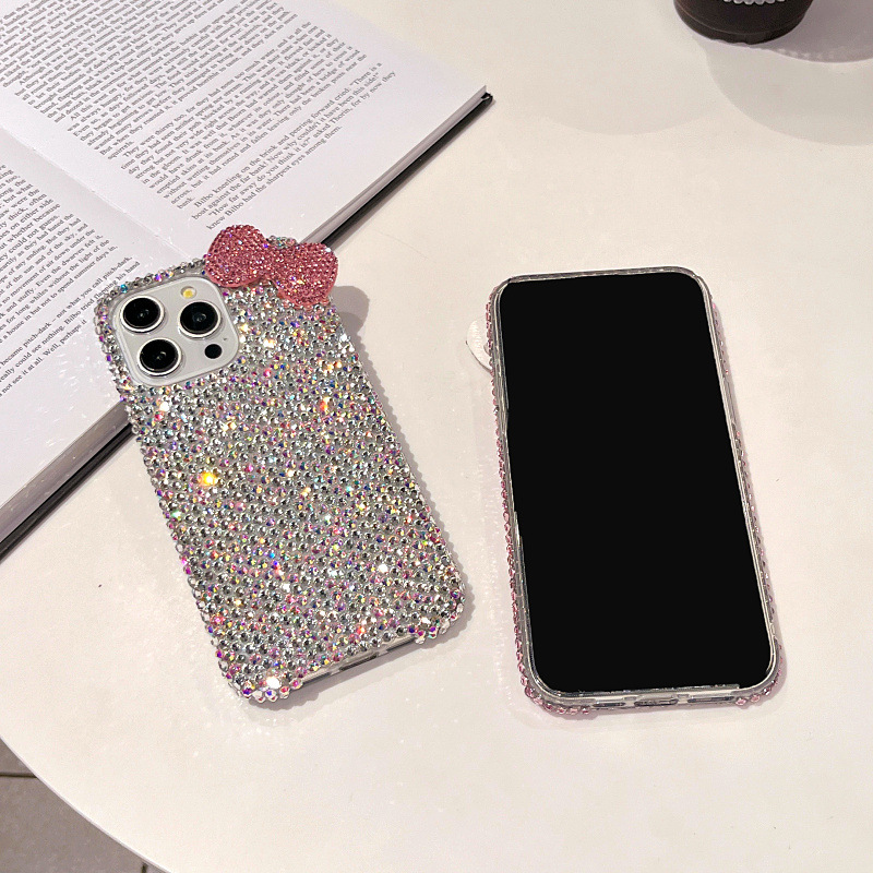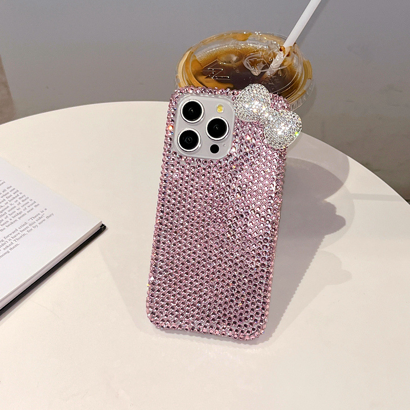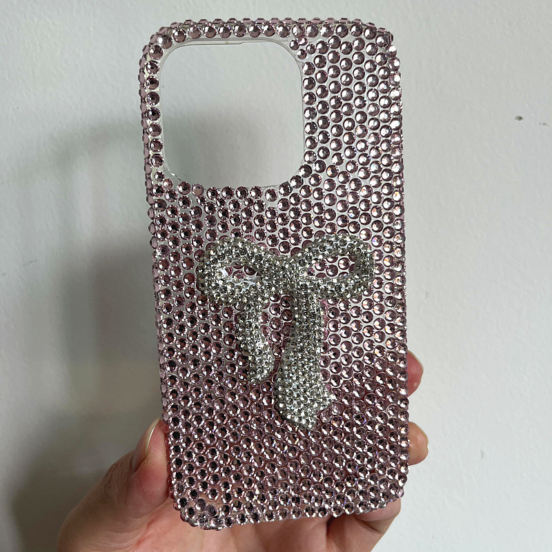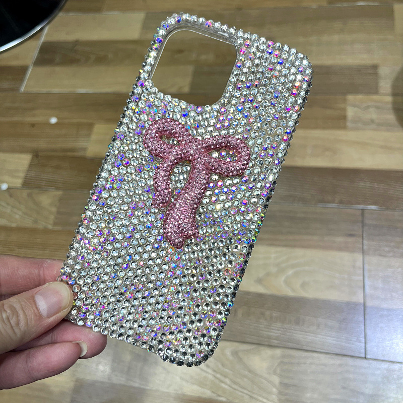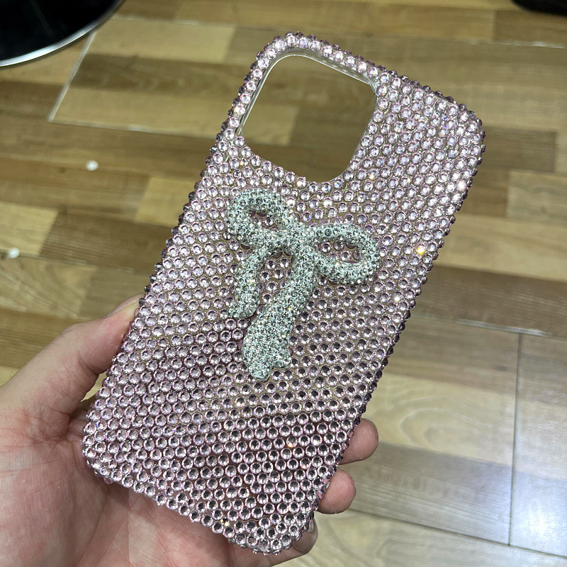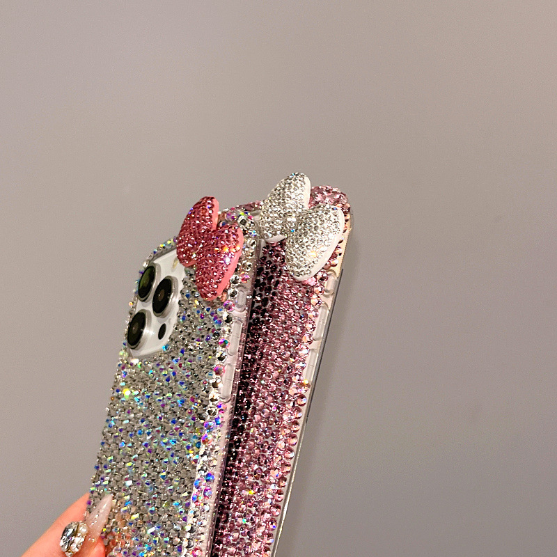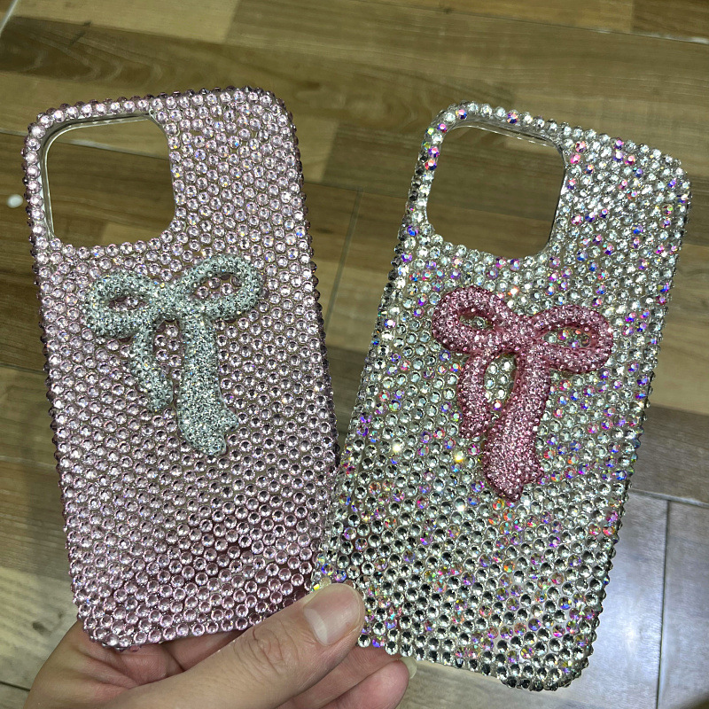 Apple 16 휴대폰 케이스에 적합한 소녀 리본 라인스톤 풀 다이아몬드 iPhone17Pro max 럭셔리 케이스 15