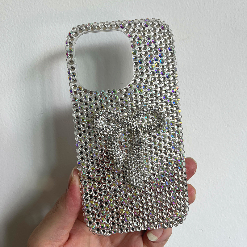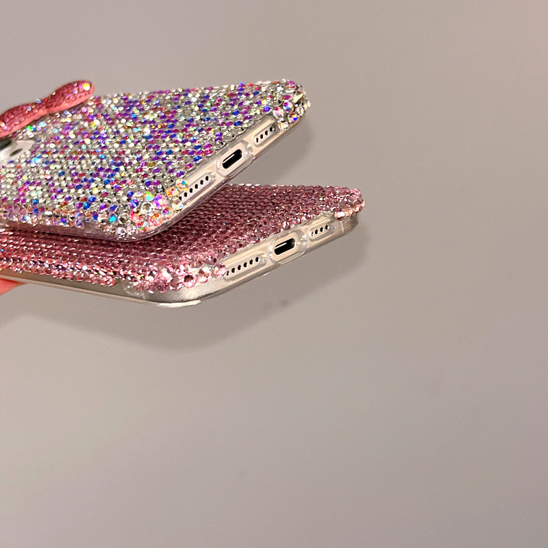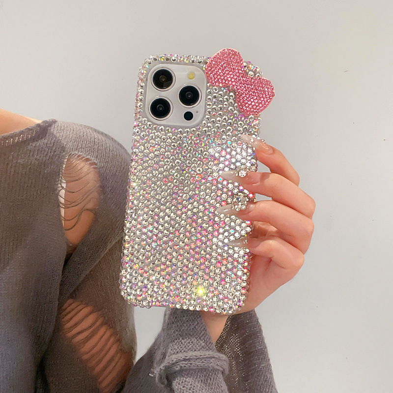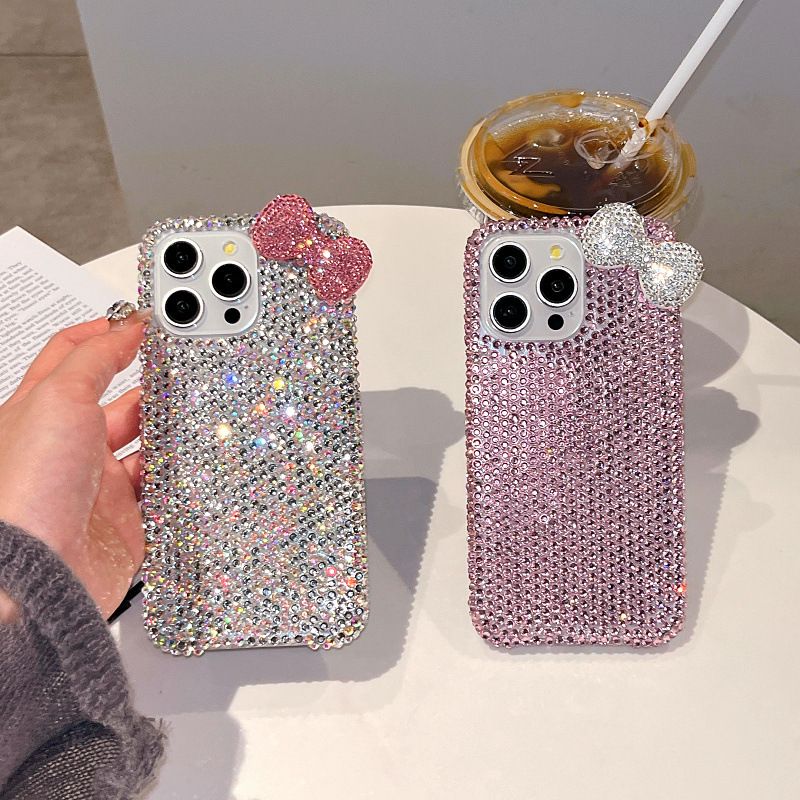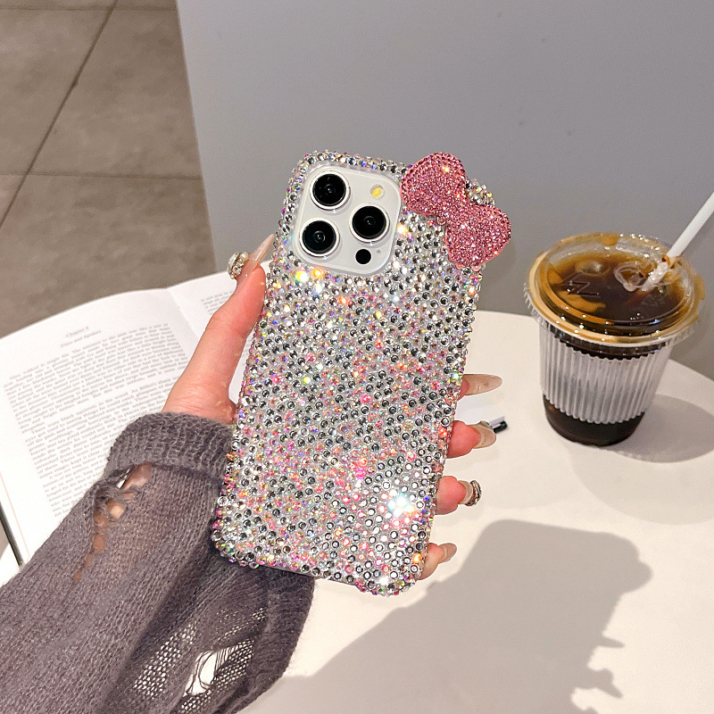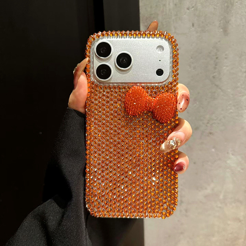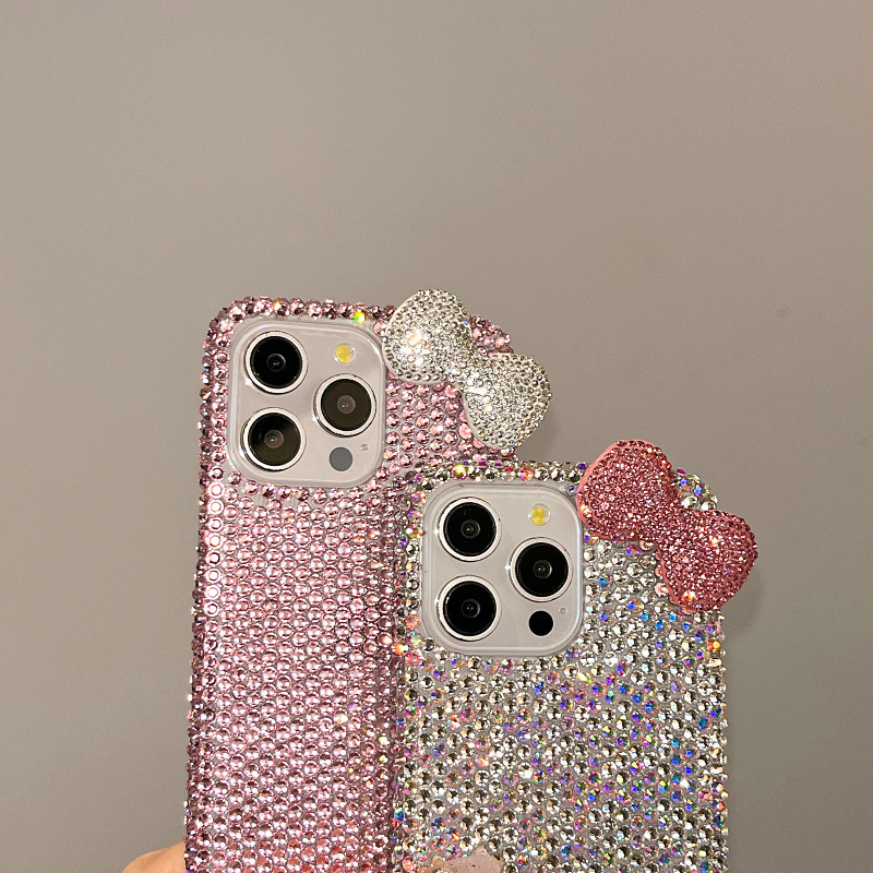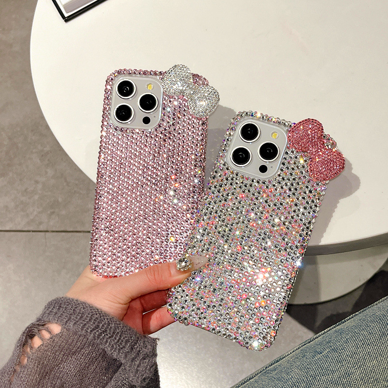 Apple 16 휴대폰 케이스에 적합한 소녀 리본 라인스톤 풀 다이아몬드 iPhone17Pro max 럭셔리 케이스 15