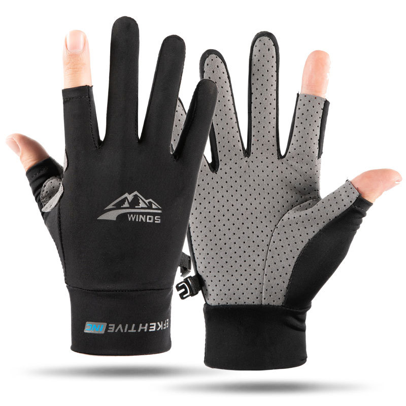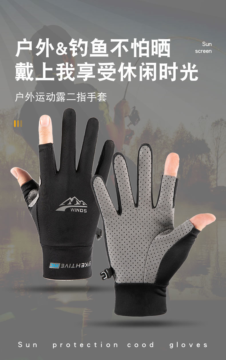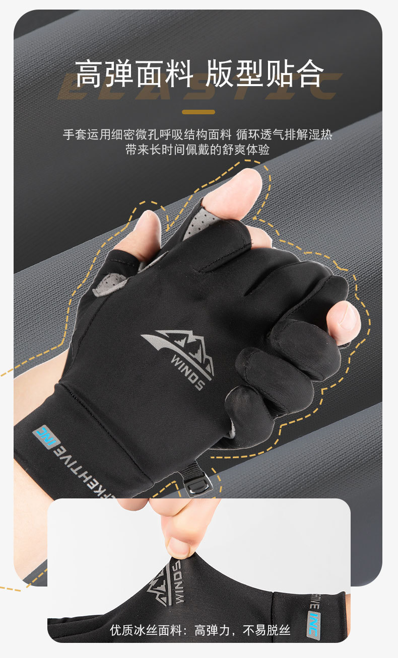 남성용 여름 얇은 낚시 장갑, 두 손가락 테이크 아웃 사이클링, 남성용 및 여성용 미끄럼 방지 피트니스 덤벨 장갑