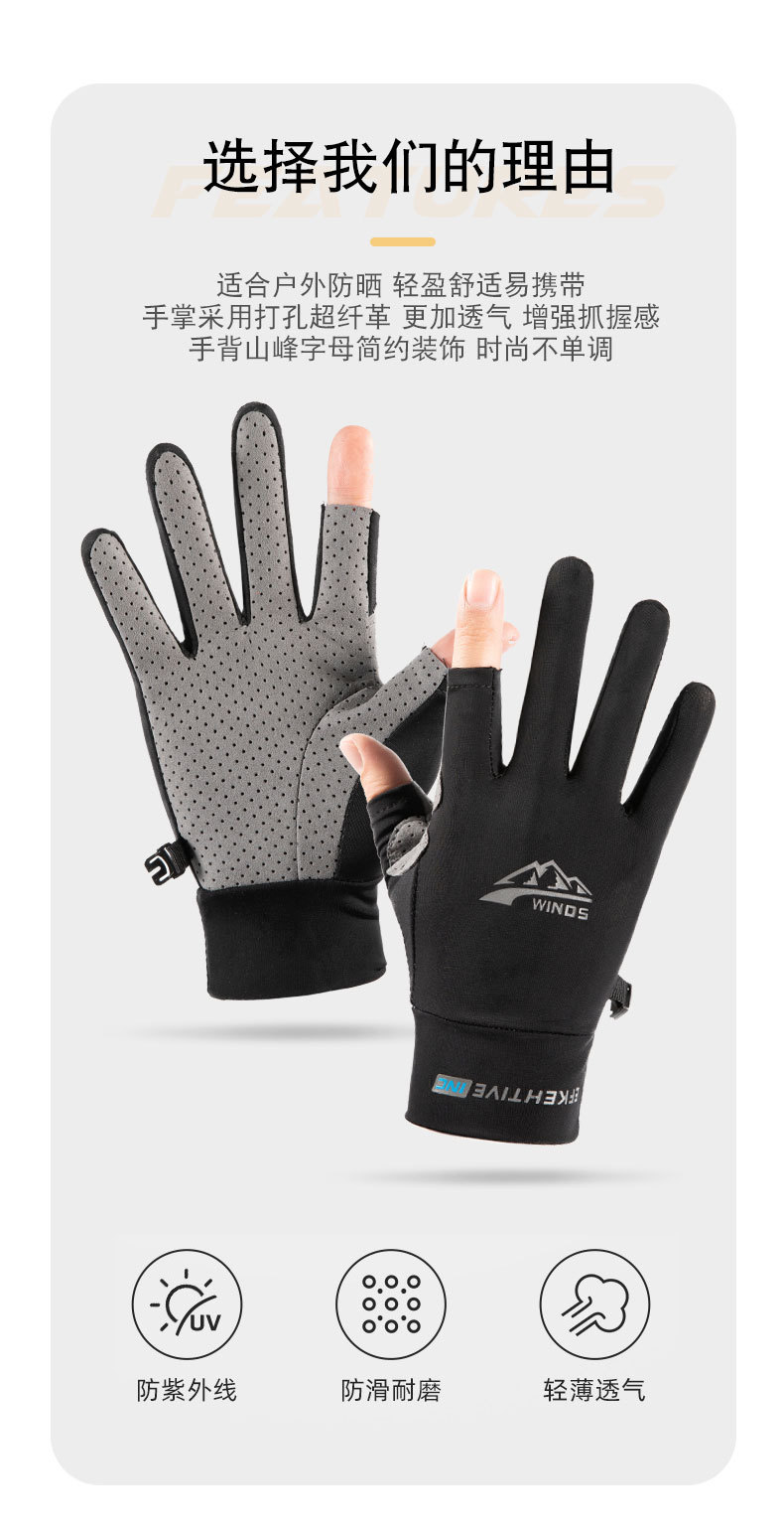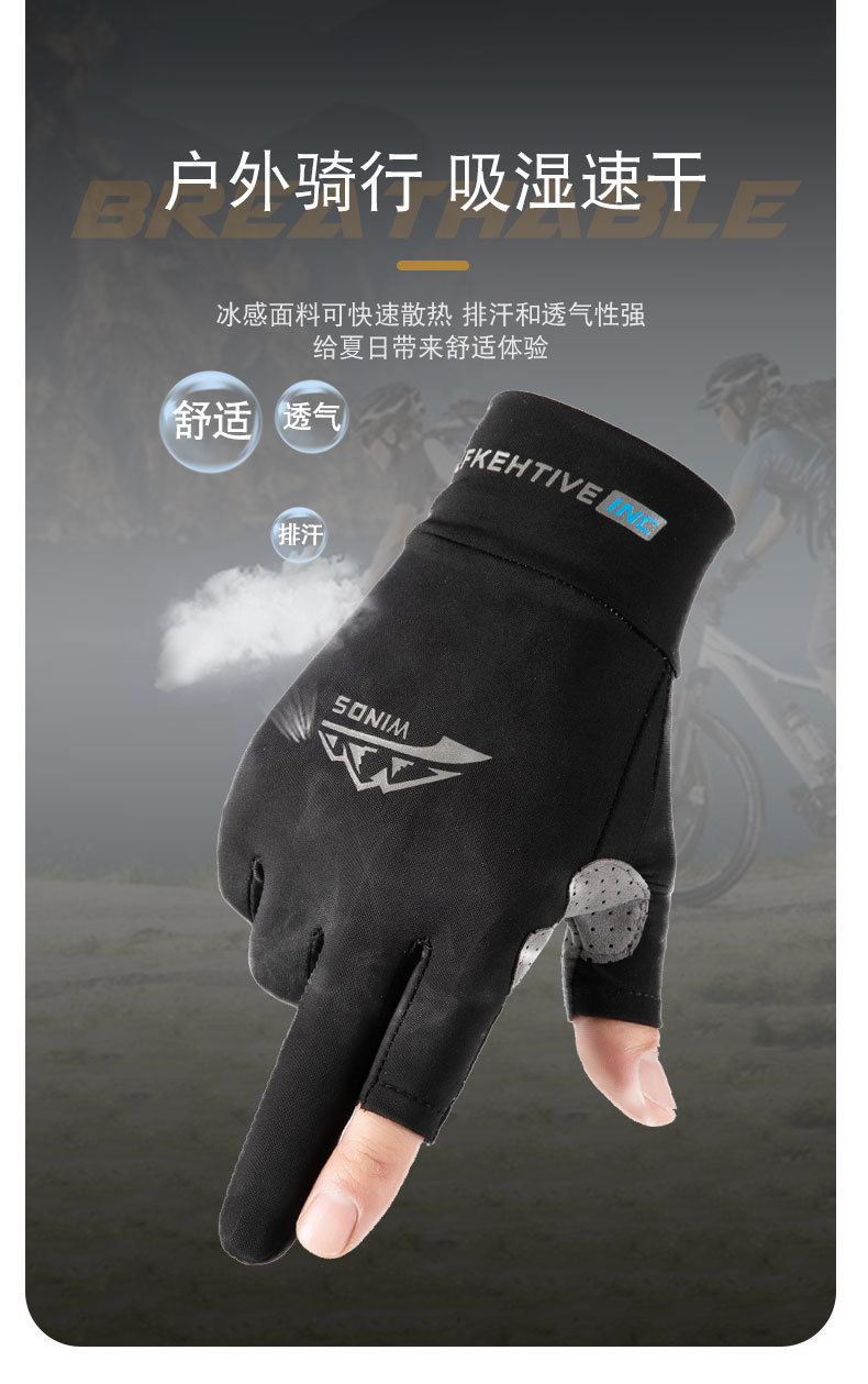 남성용 여름 얇은 낚시 장갑, 두 손가락 테이크 아웃 사이클링, 남성용 및 여성용 미끄럼 방지 피트니스 덤벨 장갑스토어 가기