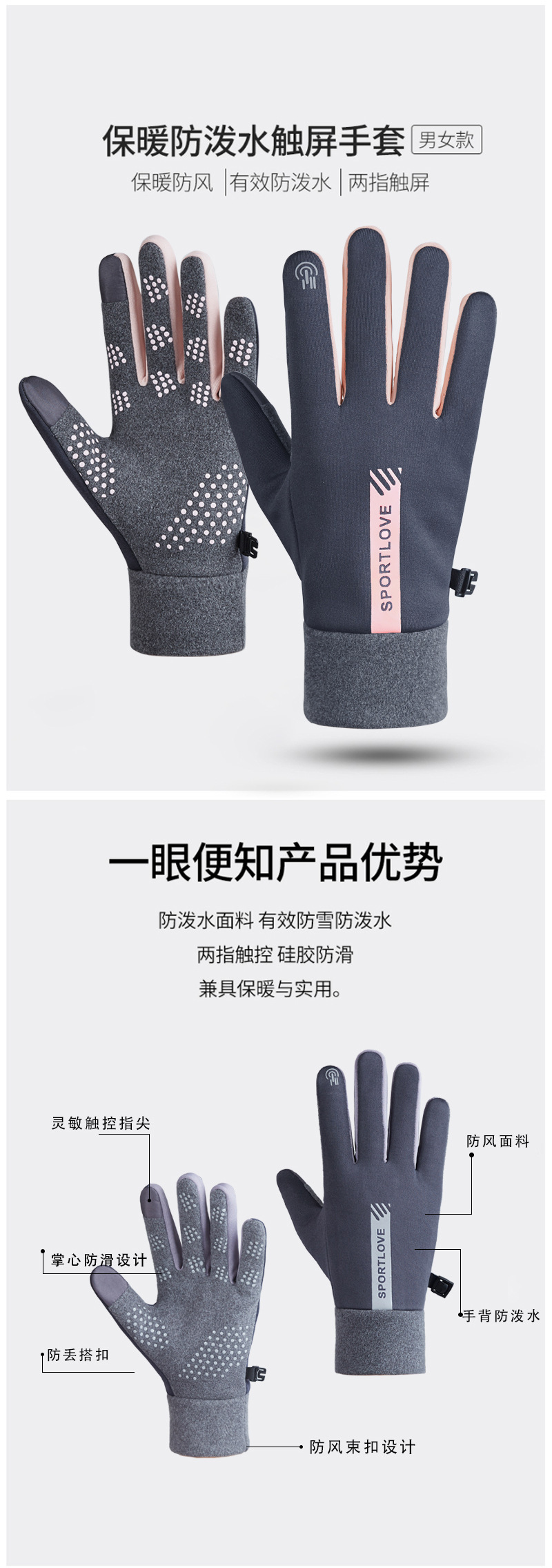 여성용 보온 장갑, 벨벳 안감, 방한, 야외 사이클링 스포츠, 미끄럼 방지, 방수, 남성용, 터치스크린 가능, 성인용, 방한, 다섯 손가락 장갑스토어 가기