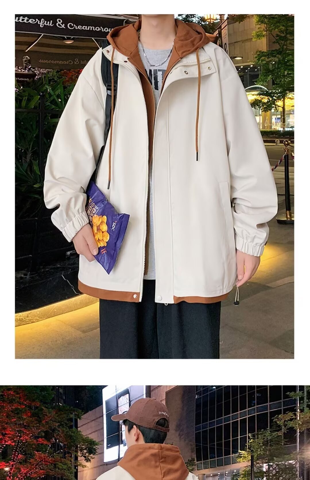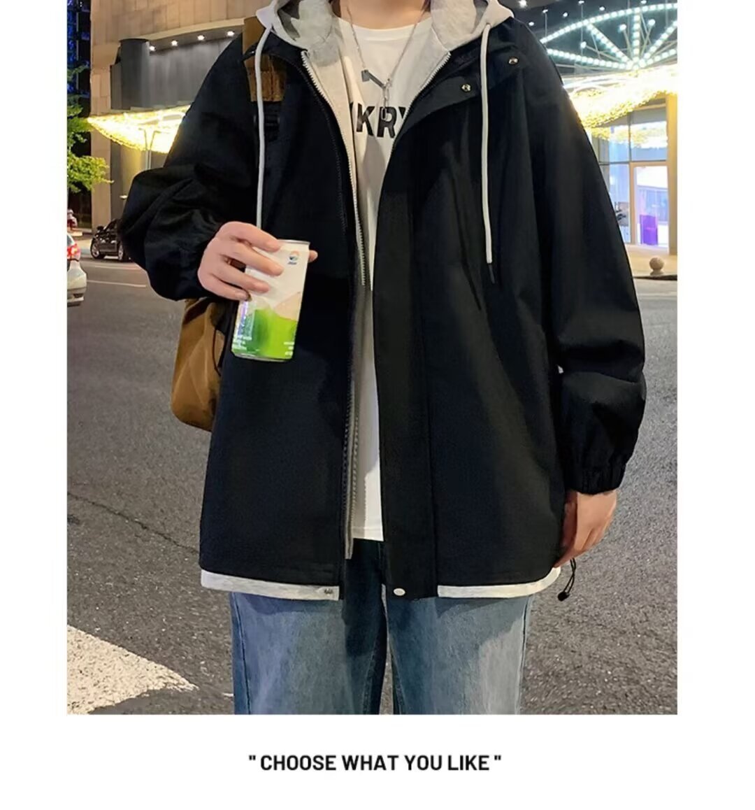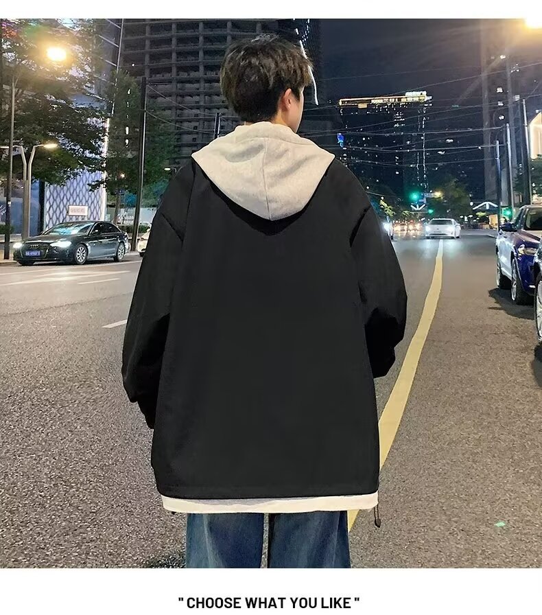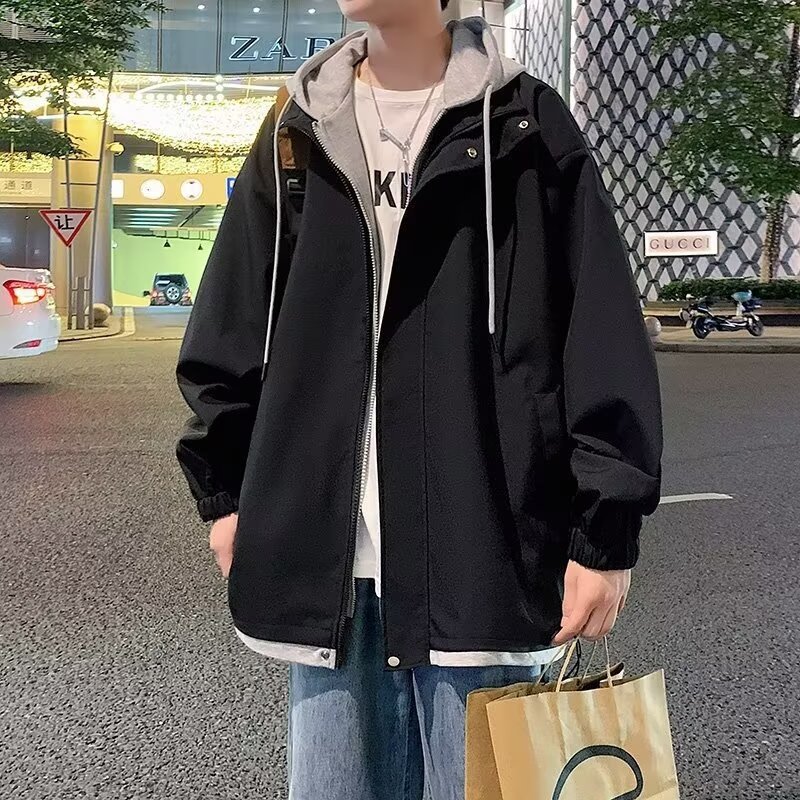 충전 재킷 남자 봄 트렌디 브랜드 툴링 홍콩 스타일 플럼 수트 핸섬 가짜 투피스 후드 루즈 방수 캐주얼 자켓스토어 가기